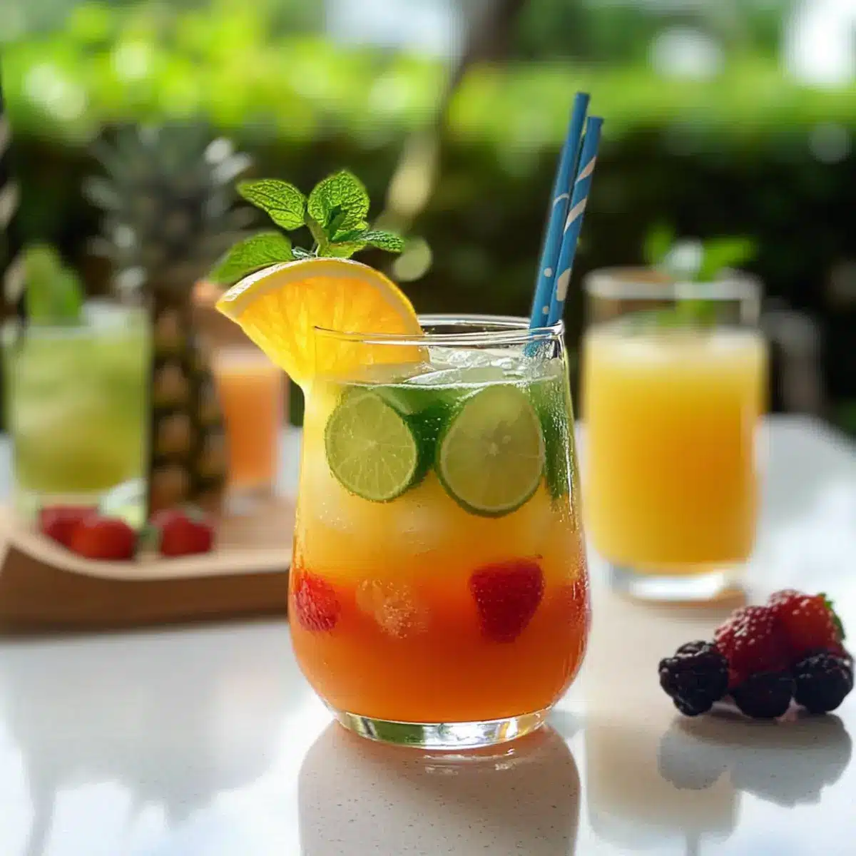 - Ananassaft – sorgt für einen tropischen Flair und erfrischenden Geschmack.