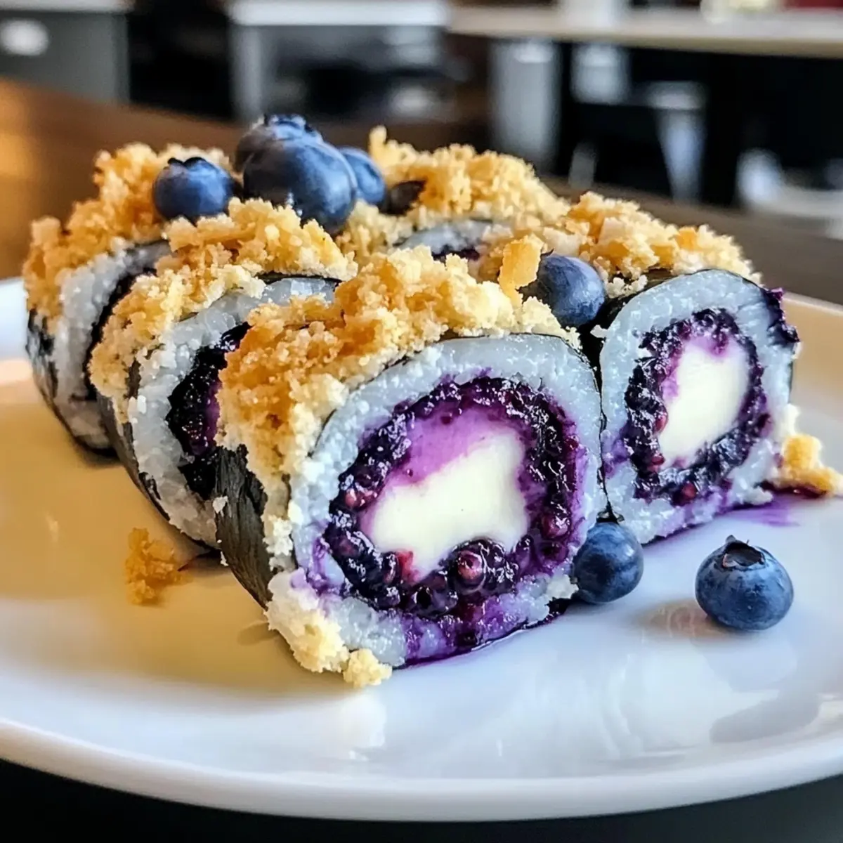 Einzigartiger Genuss: Mit diesen Blaubeer Käsekuchen Dessert Sushi Rollen erlebst du eine kreative Fusion, die traditionelle Desserts auf den Kopf stellt.