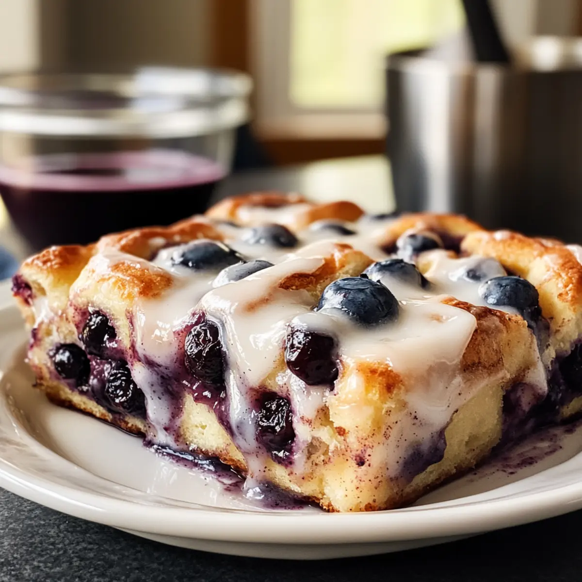 Die Blaubeer-Zimtrolle Casserole ist perfekt für die Vorbereitung im Voraus! Du kannst die gesamte Casserole bis zu 24 Stunden zuvor zubereiten, indem du die Zimtschnecken und Blaubeeren in der Backform schichtest und die Eiermilch-Mischung darüber gießt. Decke die Form mit Frischhaltefolie ab und stelle sie in den Kühlschrank. Wenn du bereit bist, sie zu backen, lasse die Casserole etwa 20-30 Minuten bei Raumtemperatur stehen und backe sie anschließend wie im Rezept angegeben für 35-40 Minuten. Um die Qualität zu erhalten, achte darauf, die Casserole nach dem Backen 5-10 Minuten abkühlen zu lassen, bevor du die Zuckerglasur darüber träufelst. So hast du ein köstliches Frühstück im Handumdrehen, das deine Familie lieben wird!