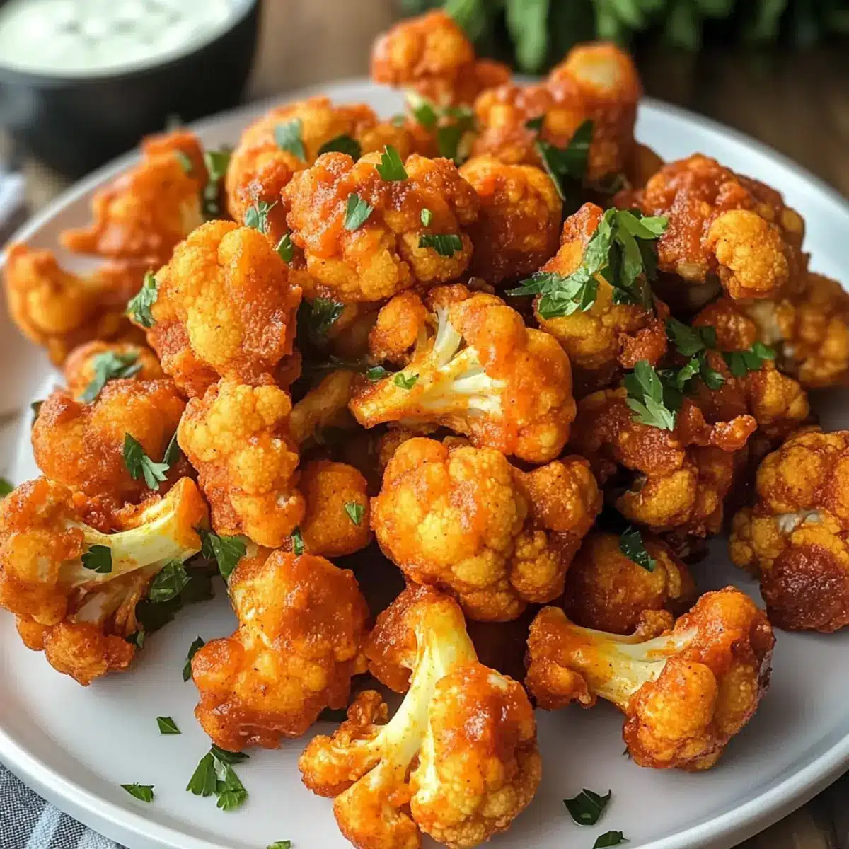 Genießen Sie den köstlichen Buffalo Blumenkohl aus der Heißluftfritteuse und entdecken Sie, wie Sie Ihre Mahlzeit perfekt abrunden können!