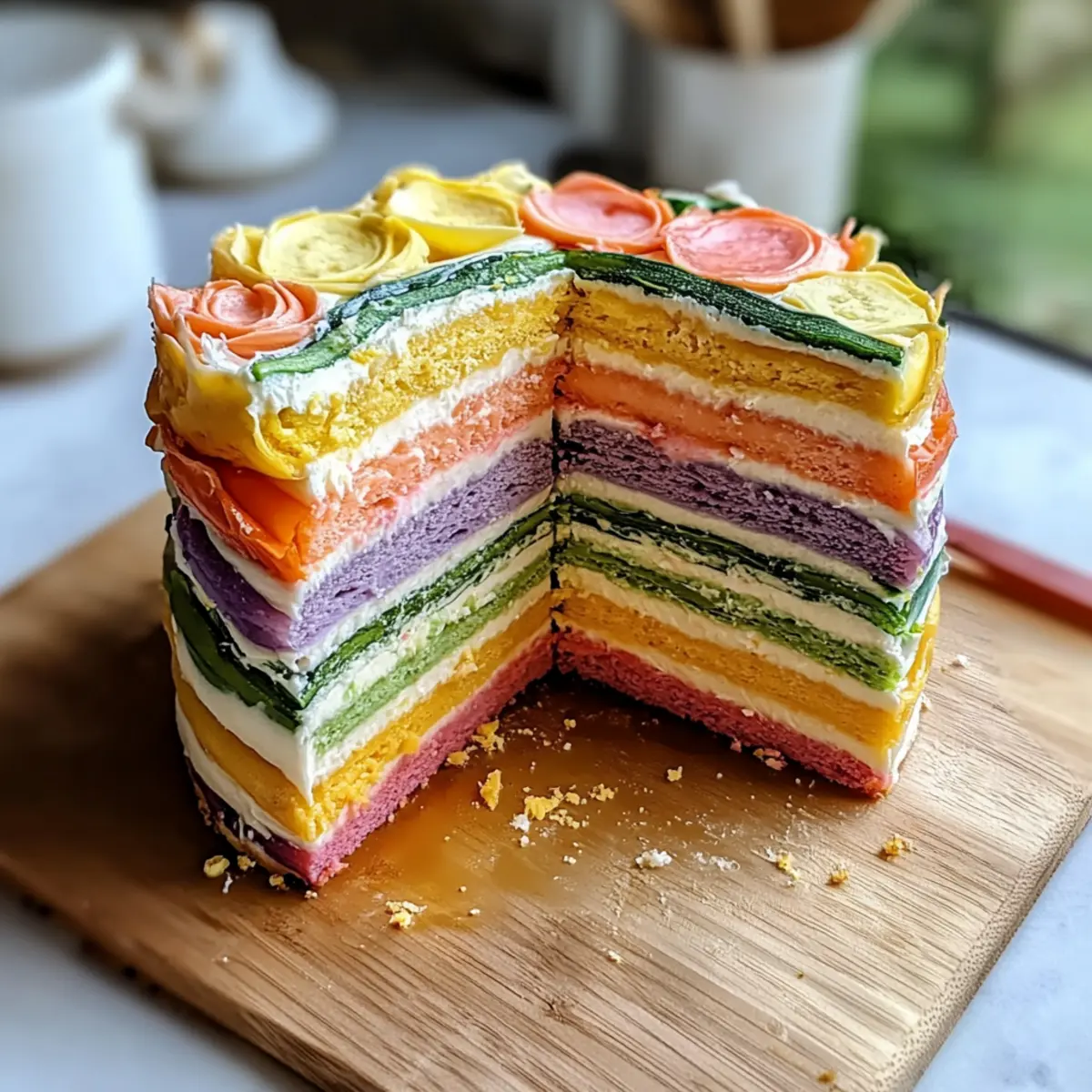 Bunter Regenbogen-Gemüse-Kuchen für jeden Anlass