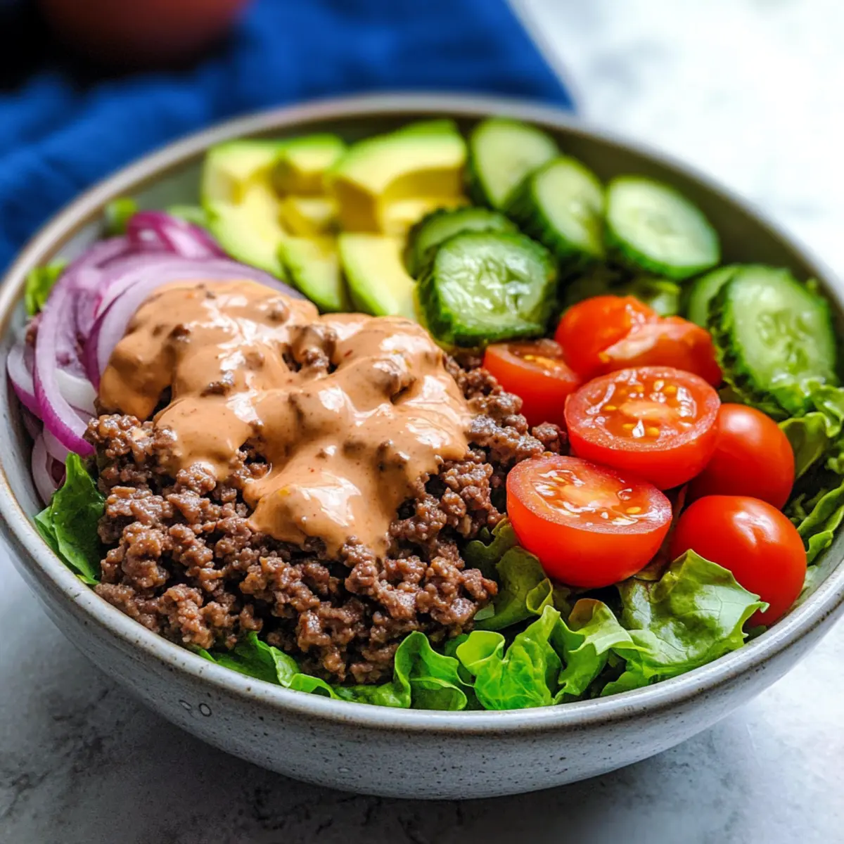 Bereite deinen Burger in einer Schüssel stressfrei vor, um in der hektischen Woche Zeit zu sparen! Du kannst das Rinderhackfleisch und die Sauce bis zu 3 Tage im Voraus zubereiten und im Kühlschrank aufbewahren. Koche das Hackfleisch wie in der Anleitung beschrieben und lagere es in einem luftdichten Behälter. Für die Sauce vermische alle Zutaten und ebenfalls in einem separaten Behälter aufbewahren. Wenn du bereit bist zu genießen, erhitze das Hackfleisch in der Mikrowelle oder auf dem Herd, assemble die Bowl mit frischem Römersalat und deinen vorbereiteten Zutaten. Achte darauf, den Römersalat separat zu lagern, um ihn knackig zu halten – so bleibt dein Burger in einer Schüssel genauso köstlich wie frisch zubereitet!