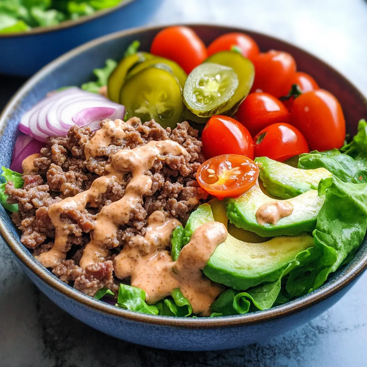 - Intensive Aromen: Achte darauf, das Hackfleisch gut zu würzen. Die Gewürze machen einen großen Unterschied im Geschmack deines Burger in einer Schüssel.