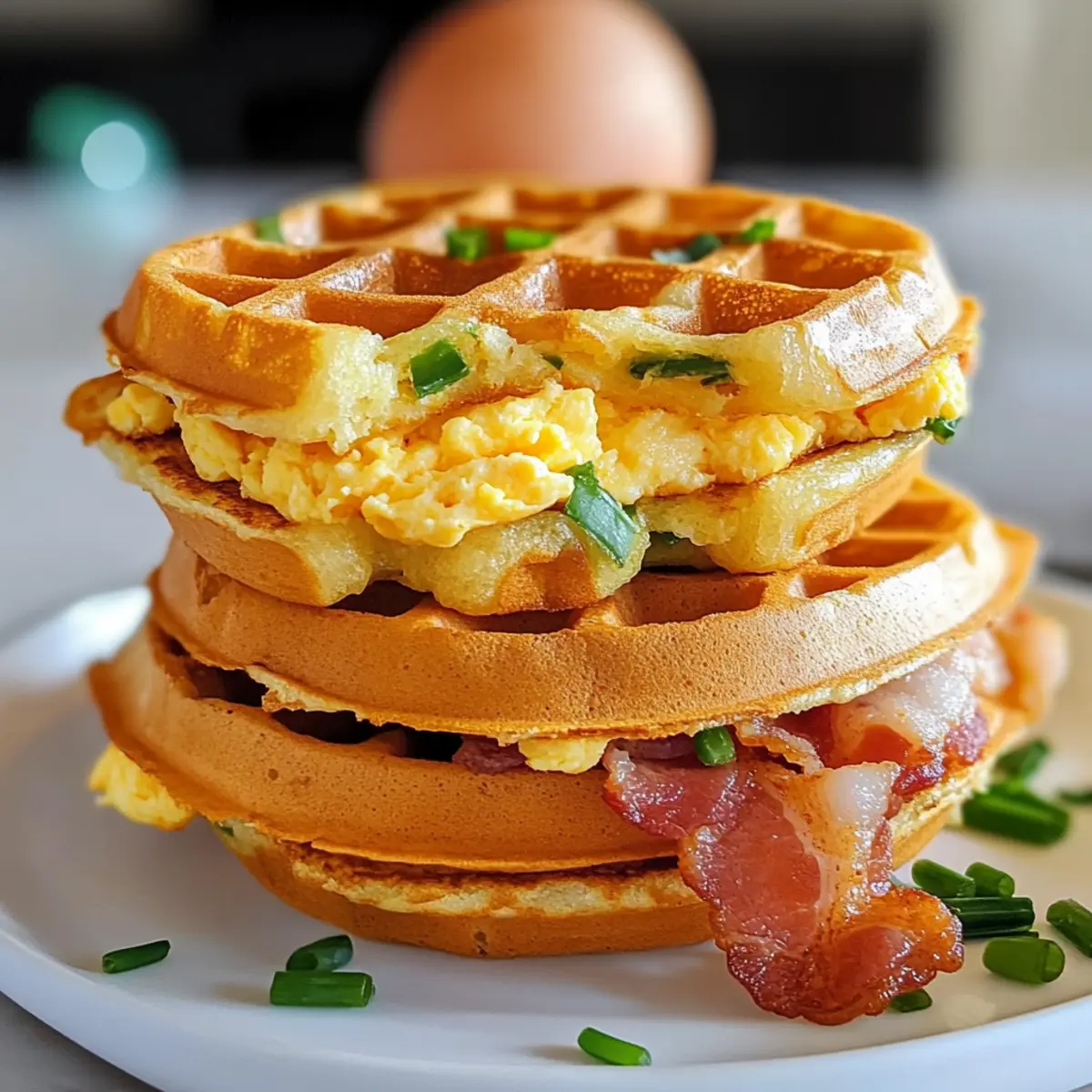 Cheddar Schnittlauch Waffel Sandwiches für Herzhaftes Frühstück