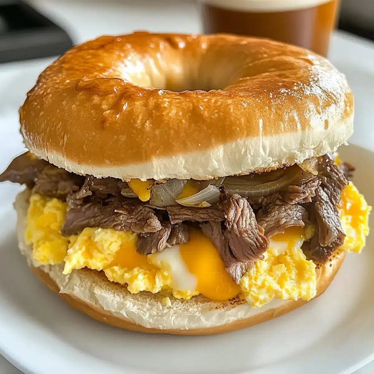 Steak Ei und Käse Bagel für ein Kräftiges Frühstück