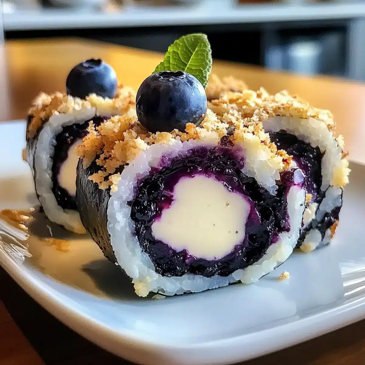 Blaubeer Käsekuchen Dessert Sushi Rollen ganz einfach