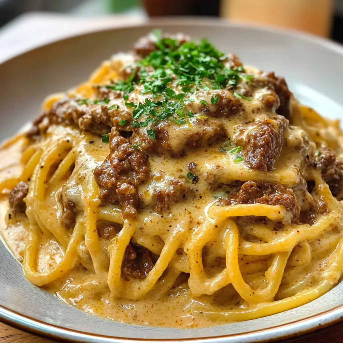 Kreolische Rindfleischspaghetti in cremiger Sauce