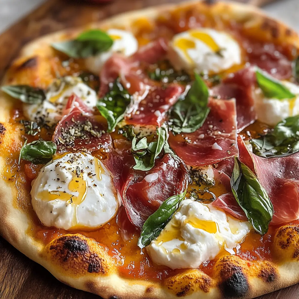 Prosciutto und Honig Burrata Pizza genießen