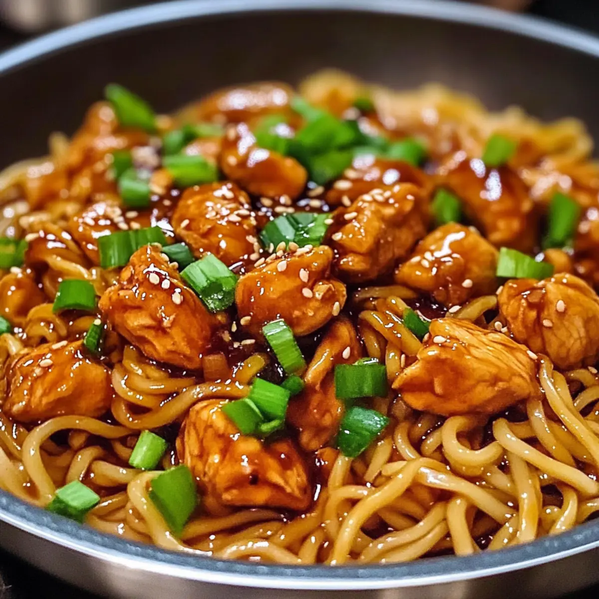 Klebrige Knoblauch-Hühnchen-Nudeln für Eilige
