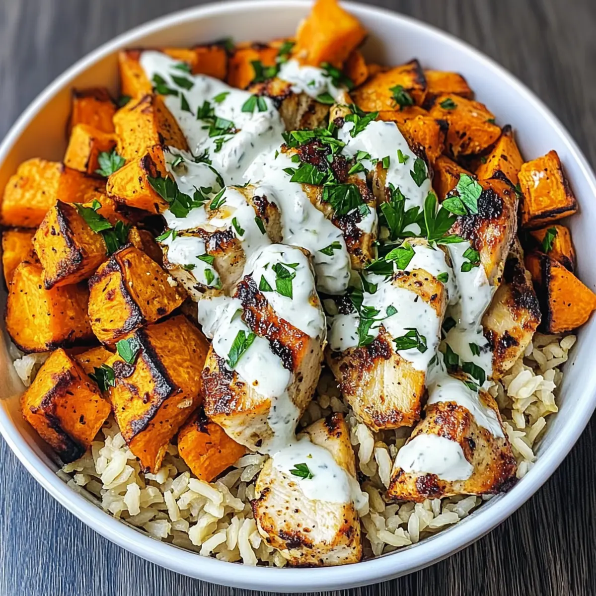 Hühnchen Süßkartoffelschüssel fürEine gesunde Mahlzeit