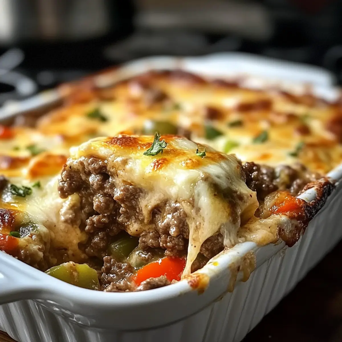 Niedrig Kohlenhydrat Philly Cheesesteak Auflauf lecker genießen