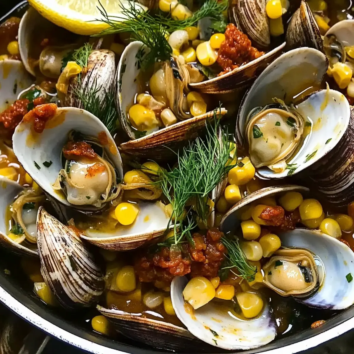 Genießen Sie Muscheln mit ‘Nduja, Mais für Genussexplosion