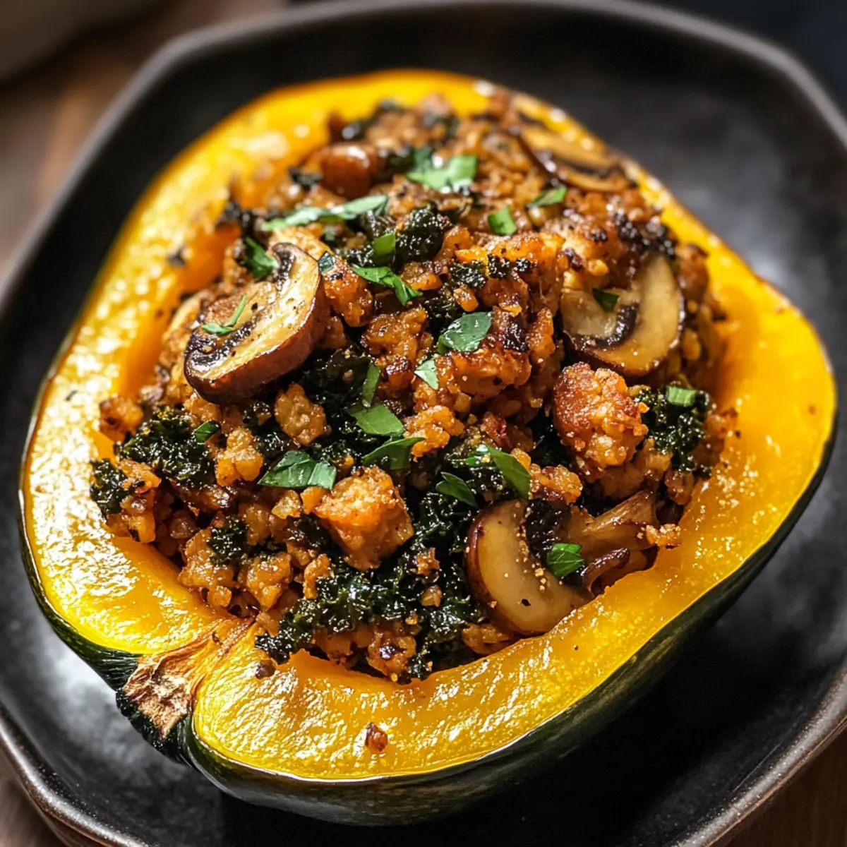 Tempeh Miso gefüllter Eichelkürbis für Genießer