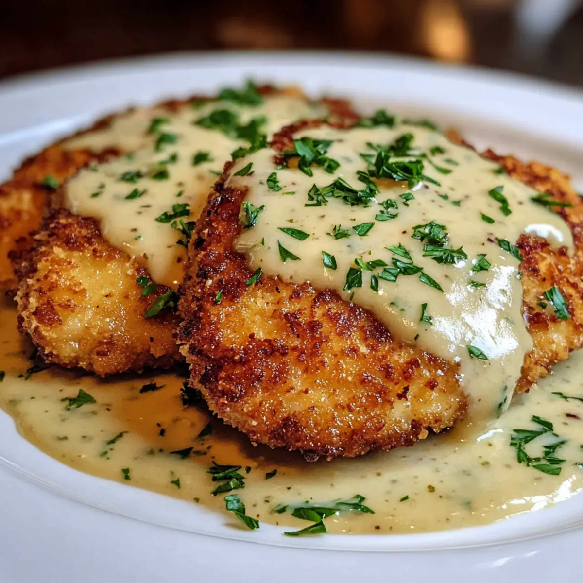 Parmesan krustiertes Hähnchen mit cremiger Knoblauchsoße