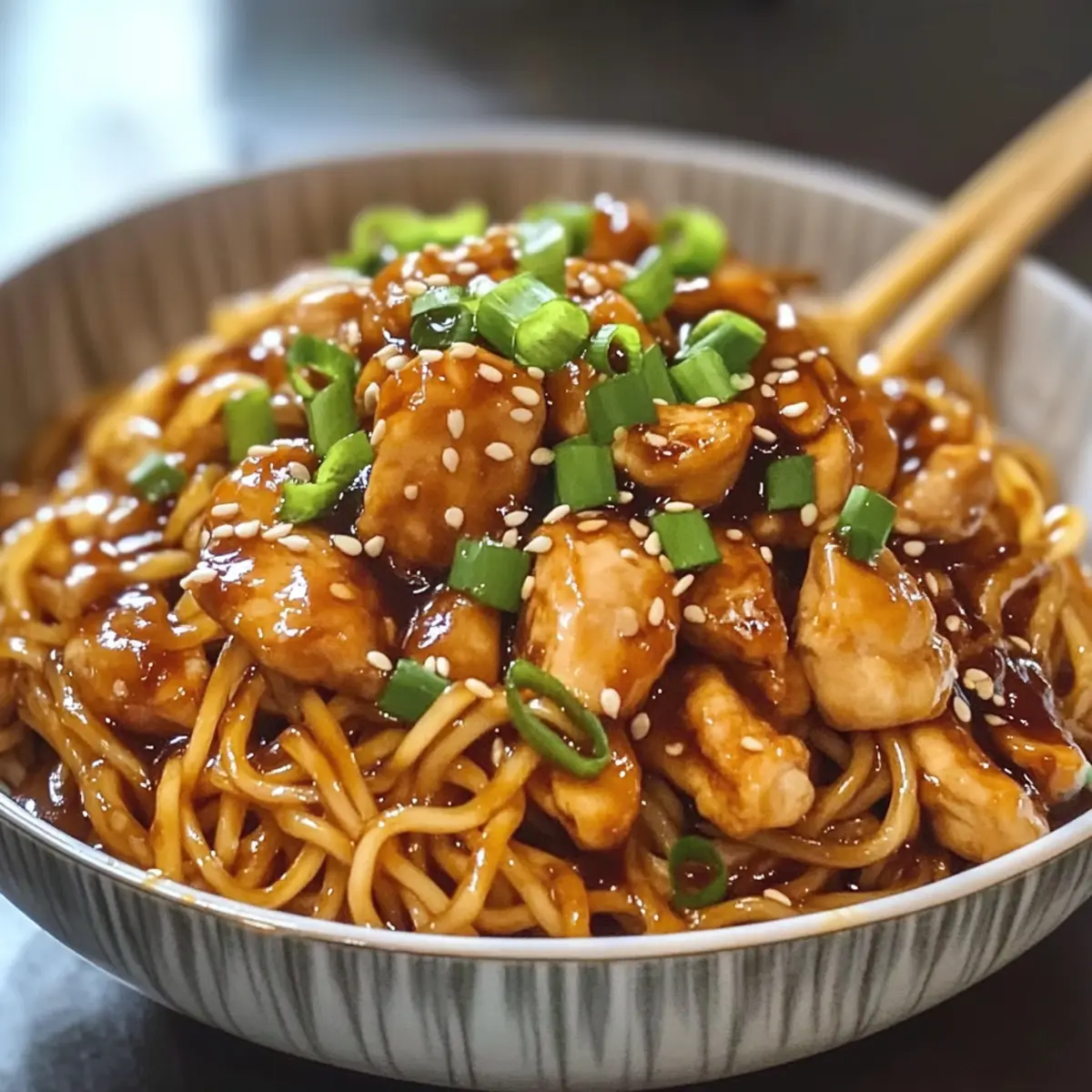 Klebrige Knoblauch-Hühnchen-Nudeln Rezept für Genießer