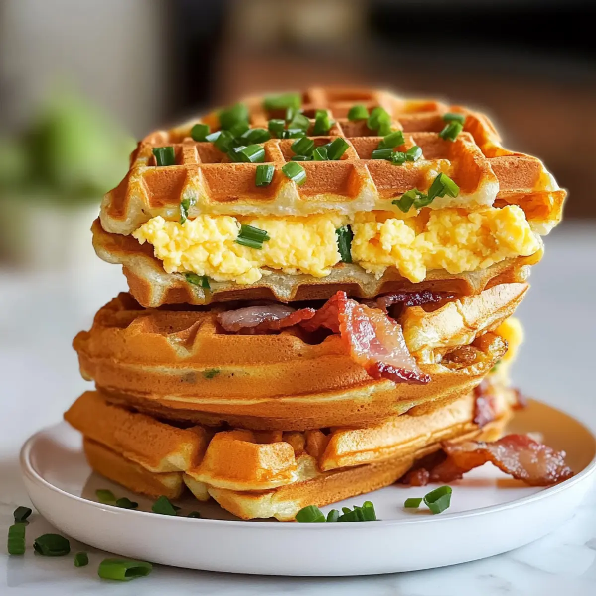 Auf einer Waffel die Schnittlauch-Mayo gleichmäßig verstreichen, dann die Rühreier, den knusprigen Speck und eventuell Avocadoscheiben darauflegen. Mit einer zweiten Waffel krönen und sofort servieren. Diese Cheddar Schnittlauch Waffel Sandwiches sind die ideale Wahl für ein herzhaftes Frühstück oder Brunch und bringen Komfort in jeden Bissen.