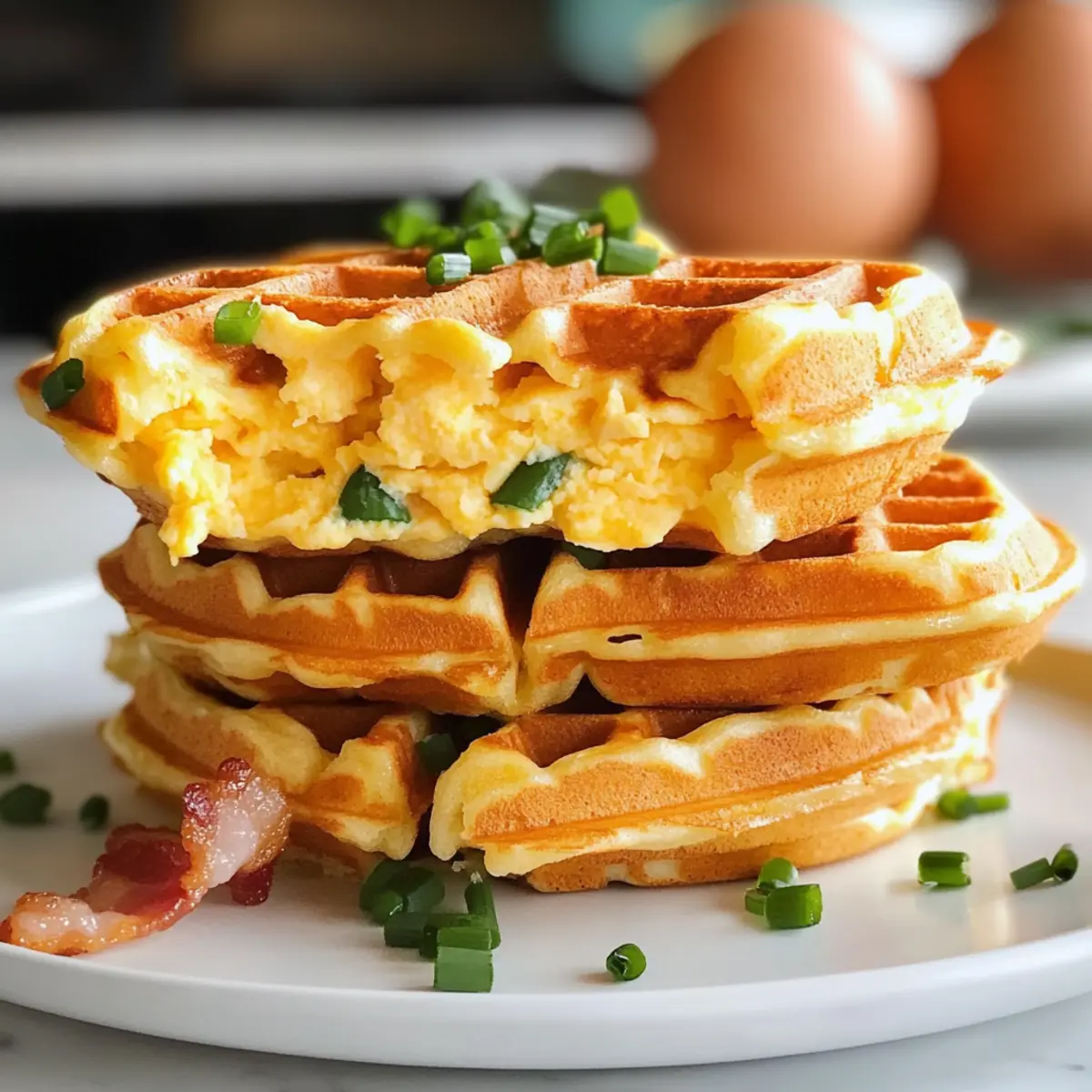 Cheddar Schnittlauch Waffel Sandwiches für Herzhaftes Frühstück