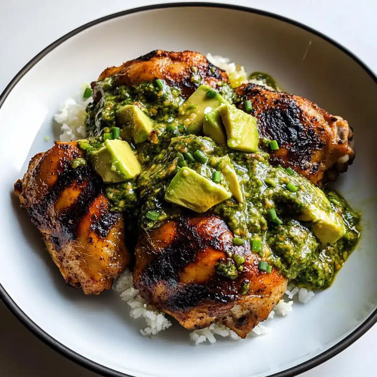 Während das Hühnchen grillt, bereiten Sie die grobe Pistazien-Sauce vor. Geben Sie die Pistazien, Avocado, frischen Zitronensaft und Schnittlauch in einen Mixer oder eine Küchenmaschine. Pulsieren Sie die Mischung, bis Sie die gewünschte Cremigkeit erreicht haben, dabei einige Stücke für zusätzlichen Biss beibehalten.