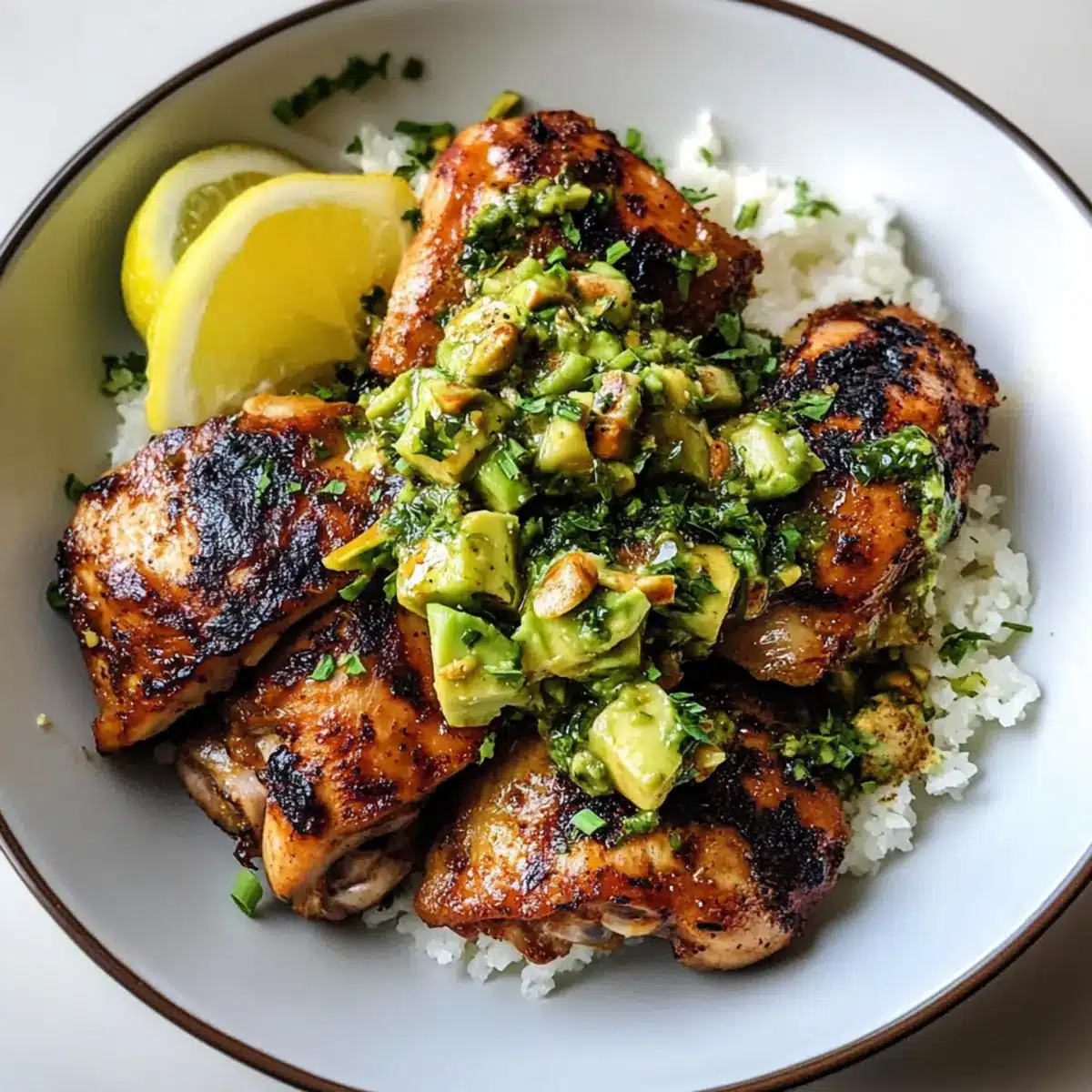 Chipotle-Hühnchen mit grober Pistazien-Sauce genießen