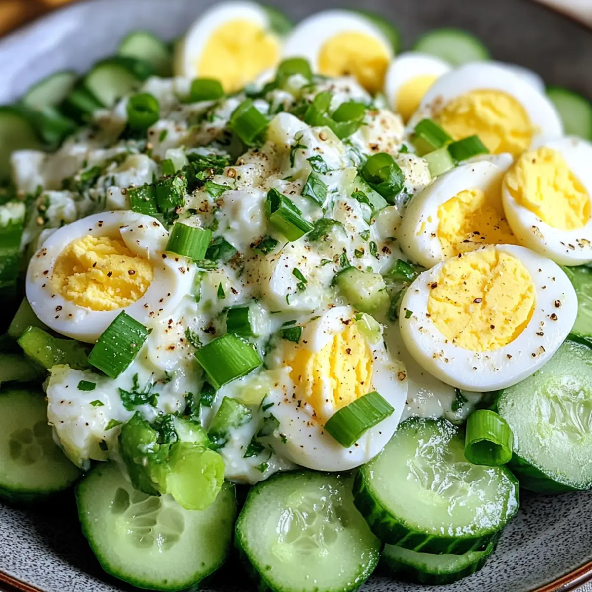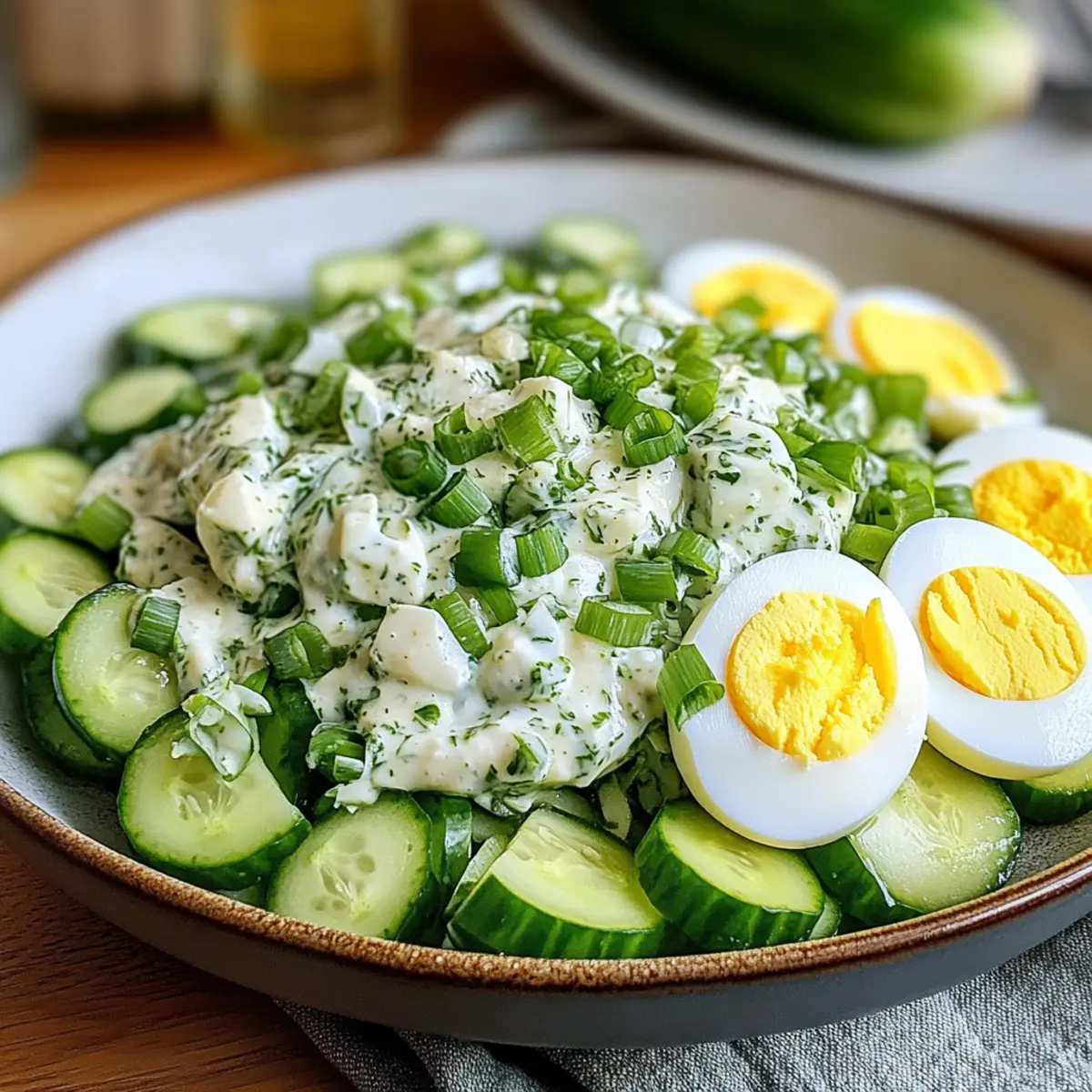 Als ich neulich in meinem Garten stand, um frisches Gemüse zu ernten, überkam mich ein köstlicher Gedanke: ein Cremiger Grüner Salat Rezept, das nicht nur gesund, sondern auch blitzschnell zubereitet ist. Diese frische und cremige Beilage vereint knackige grüne Zwiebeln, erfrischende Gurken und proteinreiche Eier zu einem echten Genuss, der selbst an hektischen Tagen Freude bereitet. In weniger als 15 Minuten entsteht ein erfrischender Salat, der nicht nur als perfekte Ergänzung zu Ihrem Hauptgericht dient, sondern auch ideal für gesellige Runden ist. Welche Variationen würden Sie gerne ausprobieren, um diesem Rezept Ihren ganz persönlichen Touch zu verleihen?