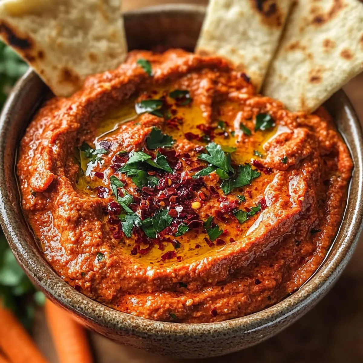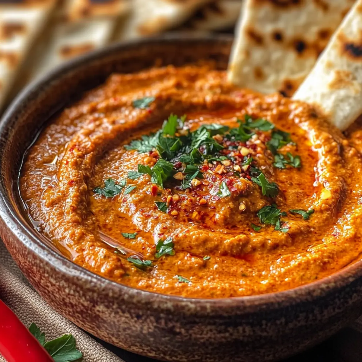 Einzigartige Aromen: Der cremige Rote-Paprika-Walnuss-Dip kombiniert die Süße von gerösteten Paprikas mit dem nussigen Geschmack von Walnüssen – ein unverwechselbares Geschmackserlebnis!