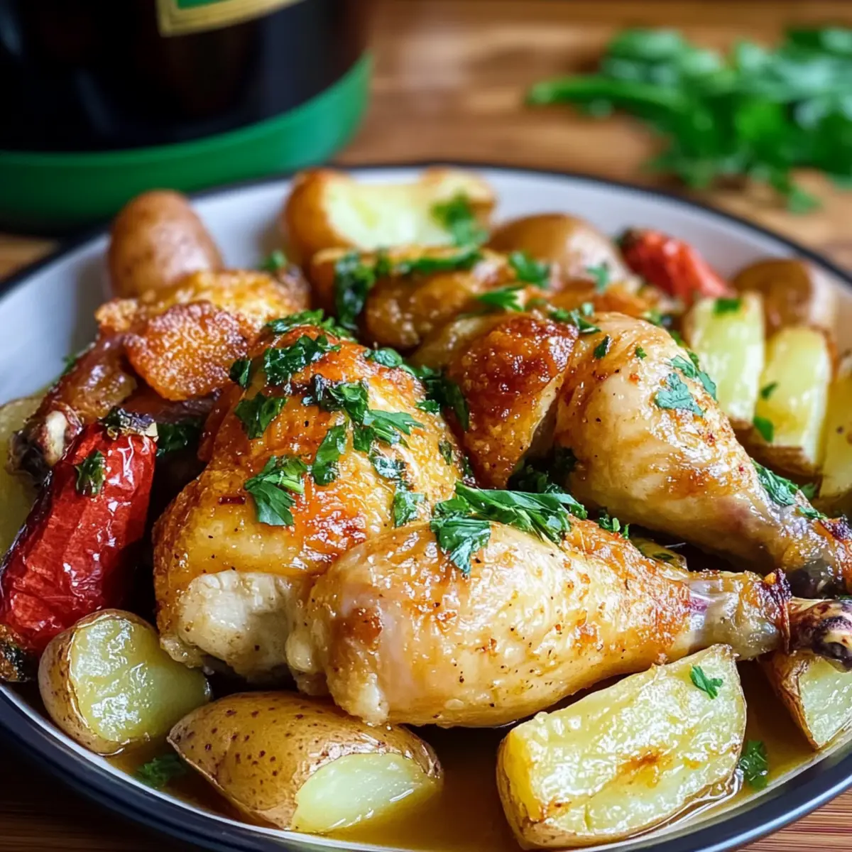 Wiedererwärmen:: Zum Aufwärmen das Hähnchen im Ofen bei 175°C (350°F) für 20-25 Minuten erhitzen, bis es vollständig durchgewärmt ist. So bleibt die Knusprigkeit der Kartoffeln erhalten.