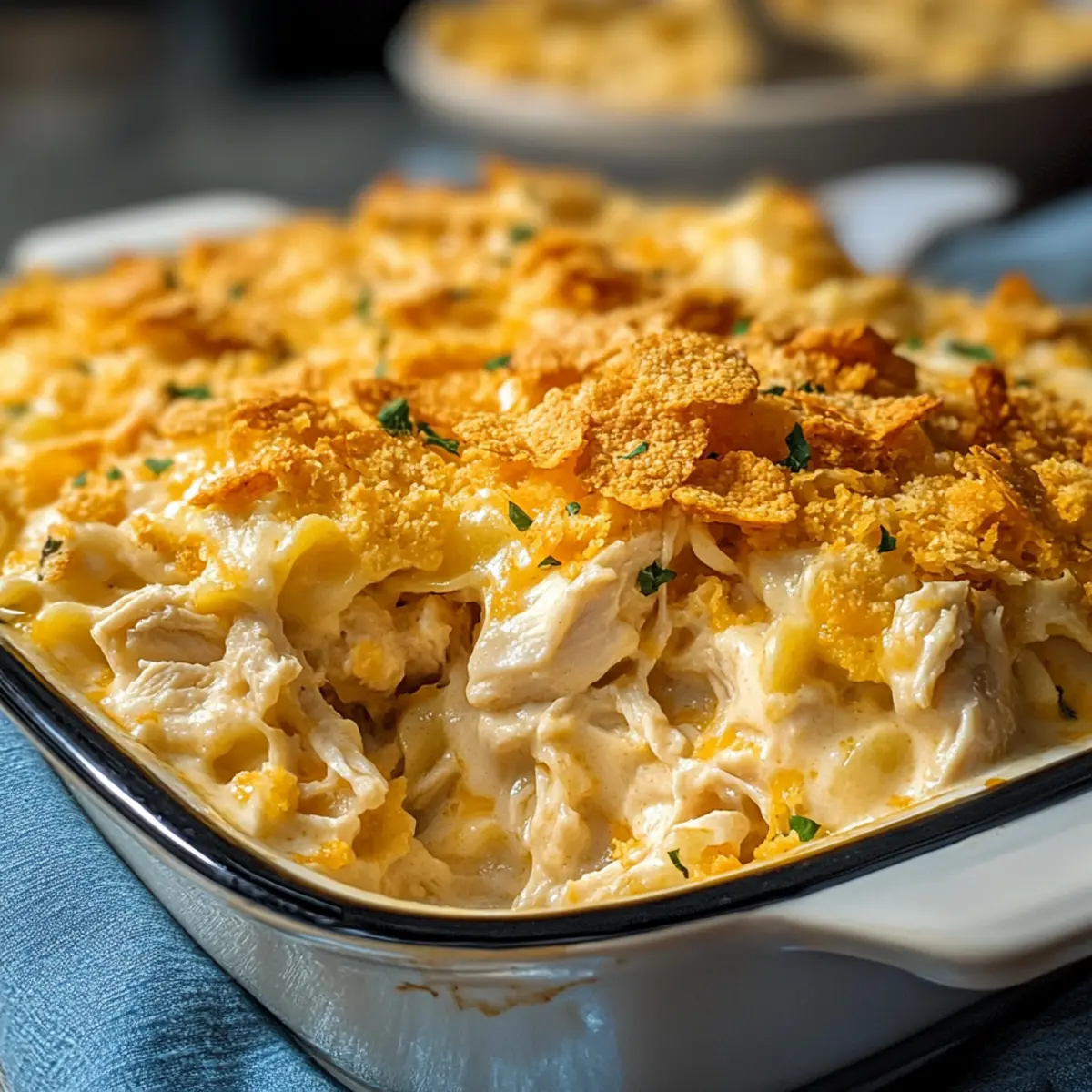 Dolly Partons 5-Zutaten-Auflauf ist perfekt für alle, die Zeit sparen möchten! Du kannst die gesamte Mischung bis zu 24 Stunden im Voraus zubereiten und im Kühlschrank aufbewahren, damit sich die Aromen gut entfalten können. Bereite die Nudeln, die cremige Basis und das Hähnchen vor und vermenge sie in der Auflaufform. Um die Qualität zu erhalten, achte darauf, die Zutaten gut zu verrühren und die Auflaufform mit Frischhaltefolie abzudecken. Wenn du bereit bist zu backen, heize den Ofen auf 175 °C vor und backe den Auflauf direkt aus dem Kühlschrank für etwa 30-35 Minuten, bis er heiß und sprudelnd ist. So hast du an hektischen Tagen leckeres Comfort Food mit minimalem Aufwand!