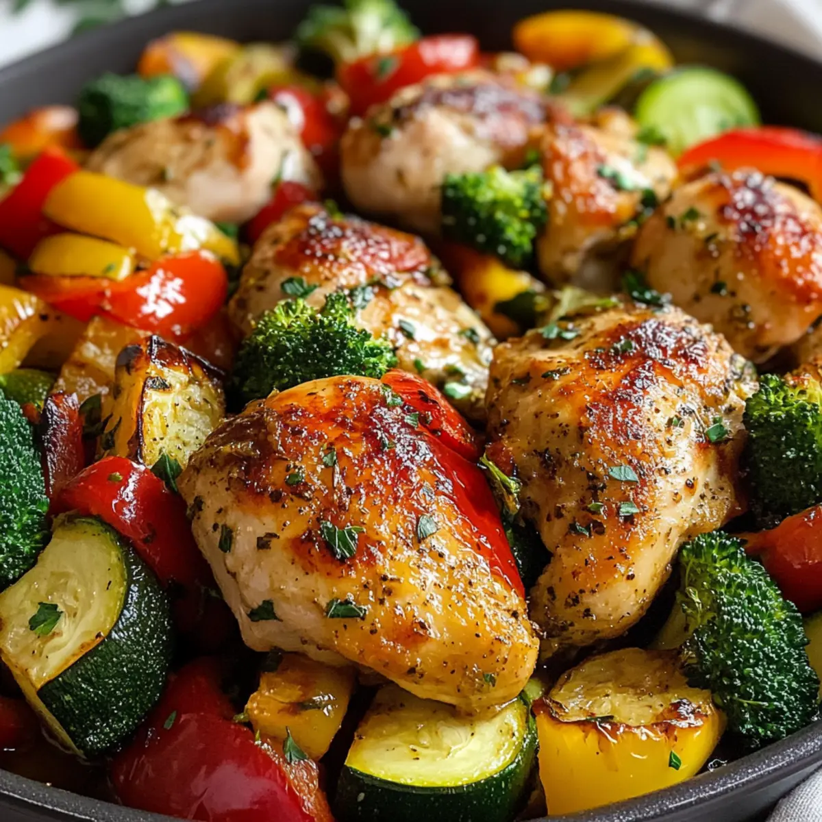 Großartige Geschmackskombinationen: Das Zusammenspiel von zartem Hühnchen und perfekt geröstetem Gemüse sorgt für ein unvergleichliches Geschmackserlebnis. Du wirst immer wieder darauf zurückkommen!