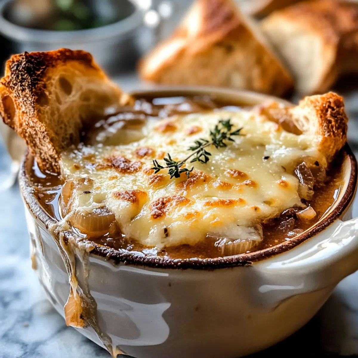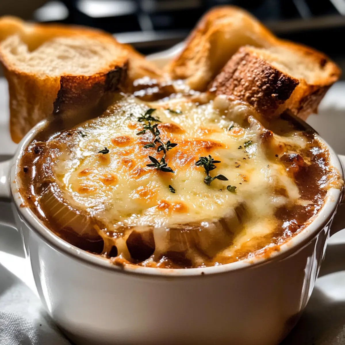 - Gruyère Käse – Schmilzt wunderbar und bildet eine cremige, herzhafte Kruste auf der Suppe.