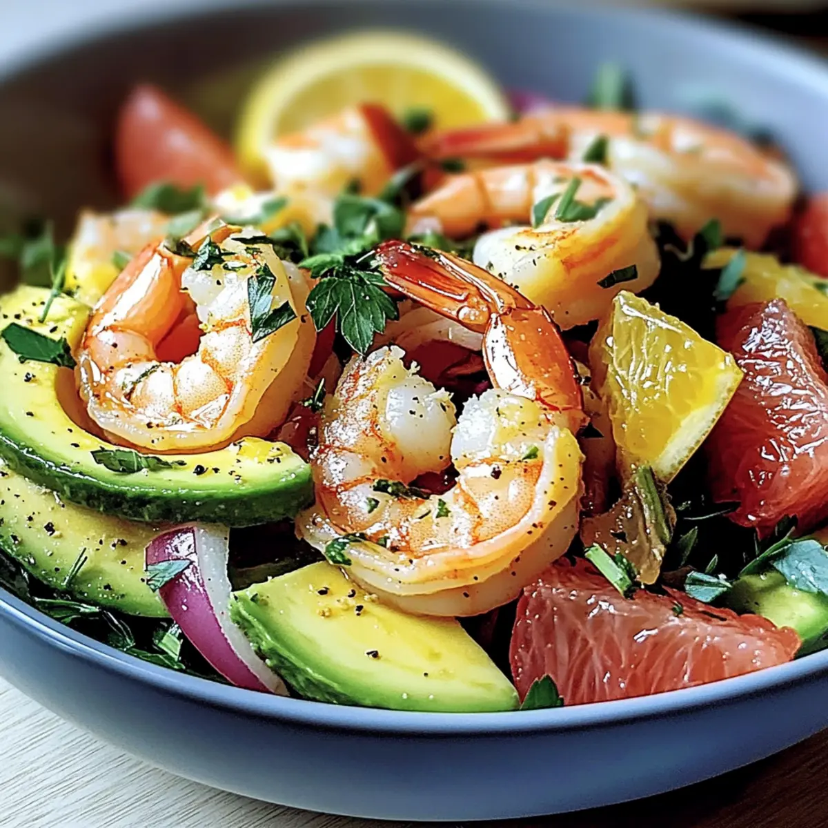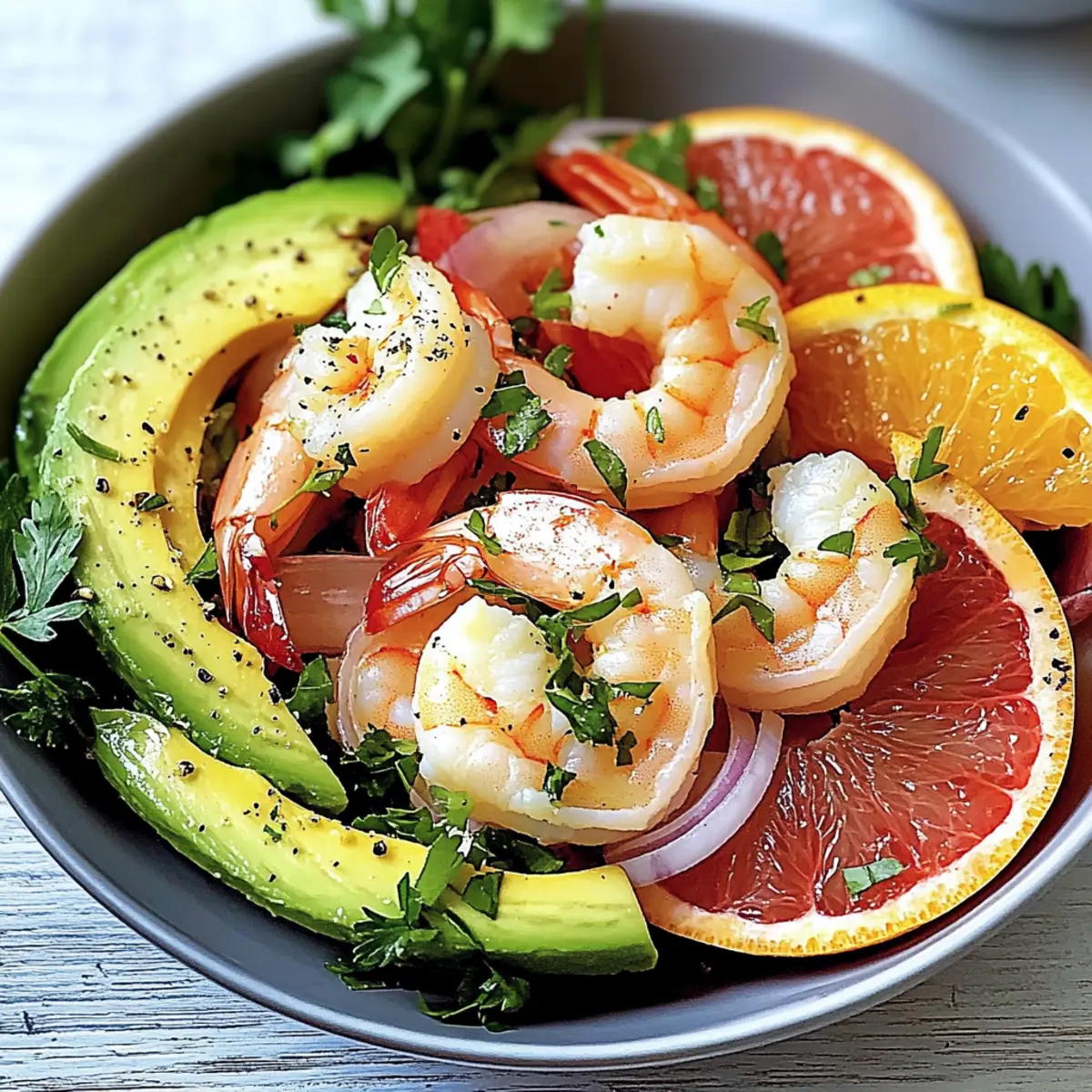 Exotischer Salat mit Avocado, Grapefruit und Garnelen