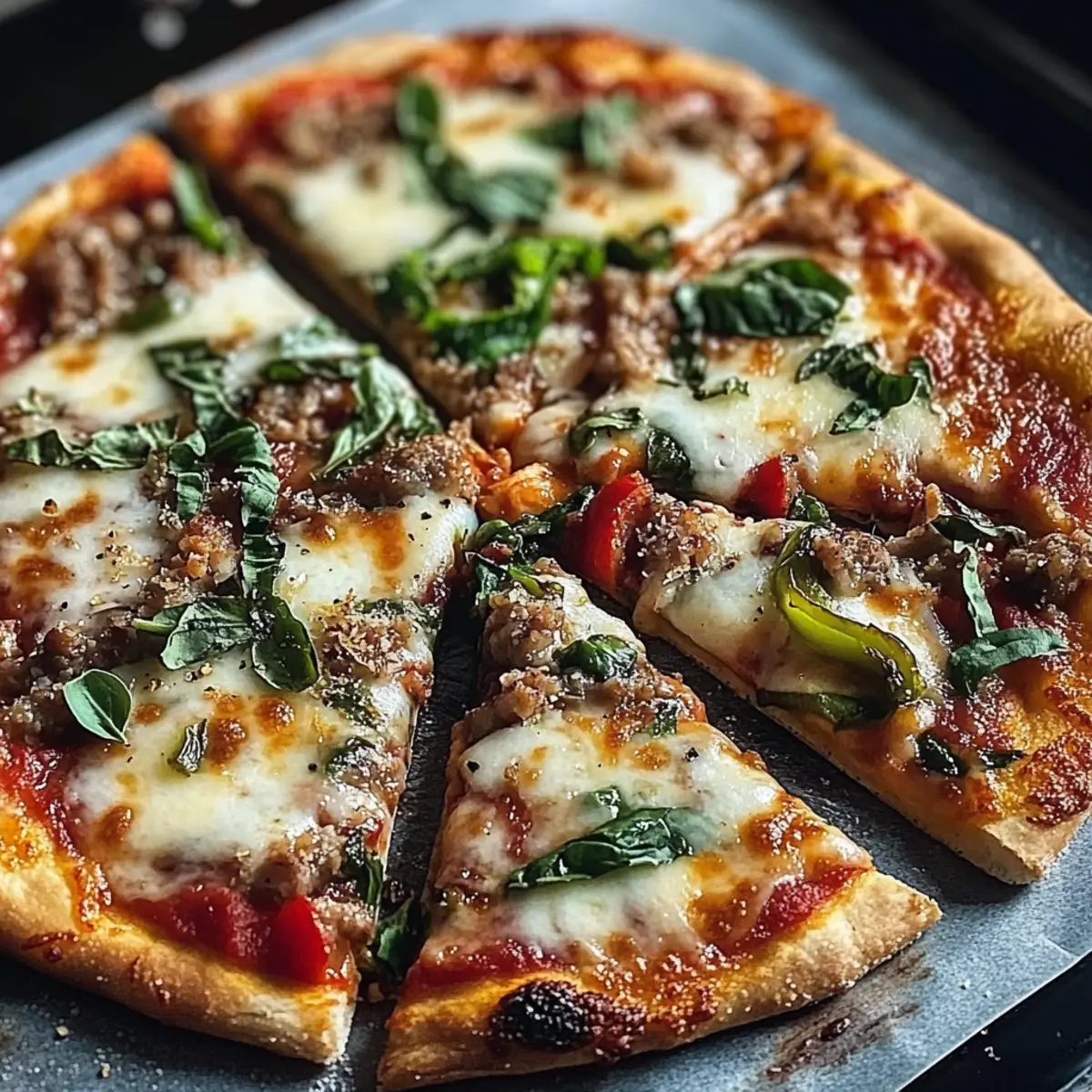 Scharfe Note: Streue Jalapeños oder Chiliflocken vor dem Backen über die Pizza für einen scharfen Kick.