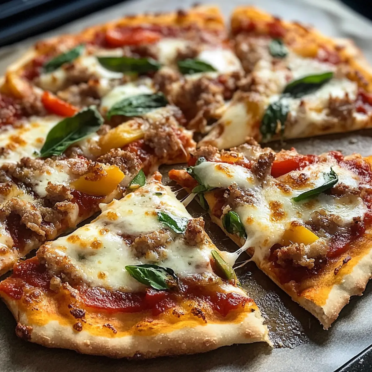 - Belag nach Wahl (z.B. Paprika, Zwiebeln, Spinat, Hähnchenbrust, Champignons) – passe die Pizza deinem Geschmack an.