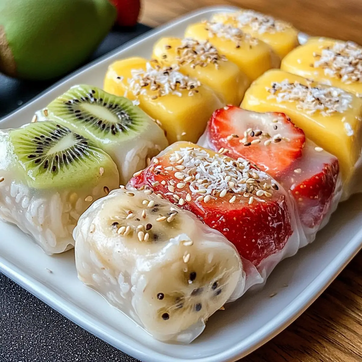 Variiere die Füllung: Nutze die Saison und deine Vorlieben, um verschiedene Früchte in deinen Sommerrollen zu kombinieren. So bleibt das Rezept frisch und spannend!