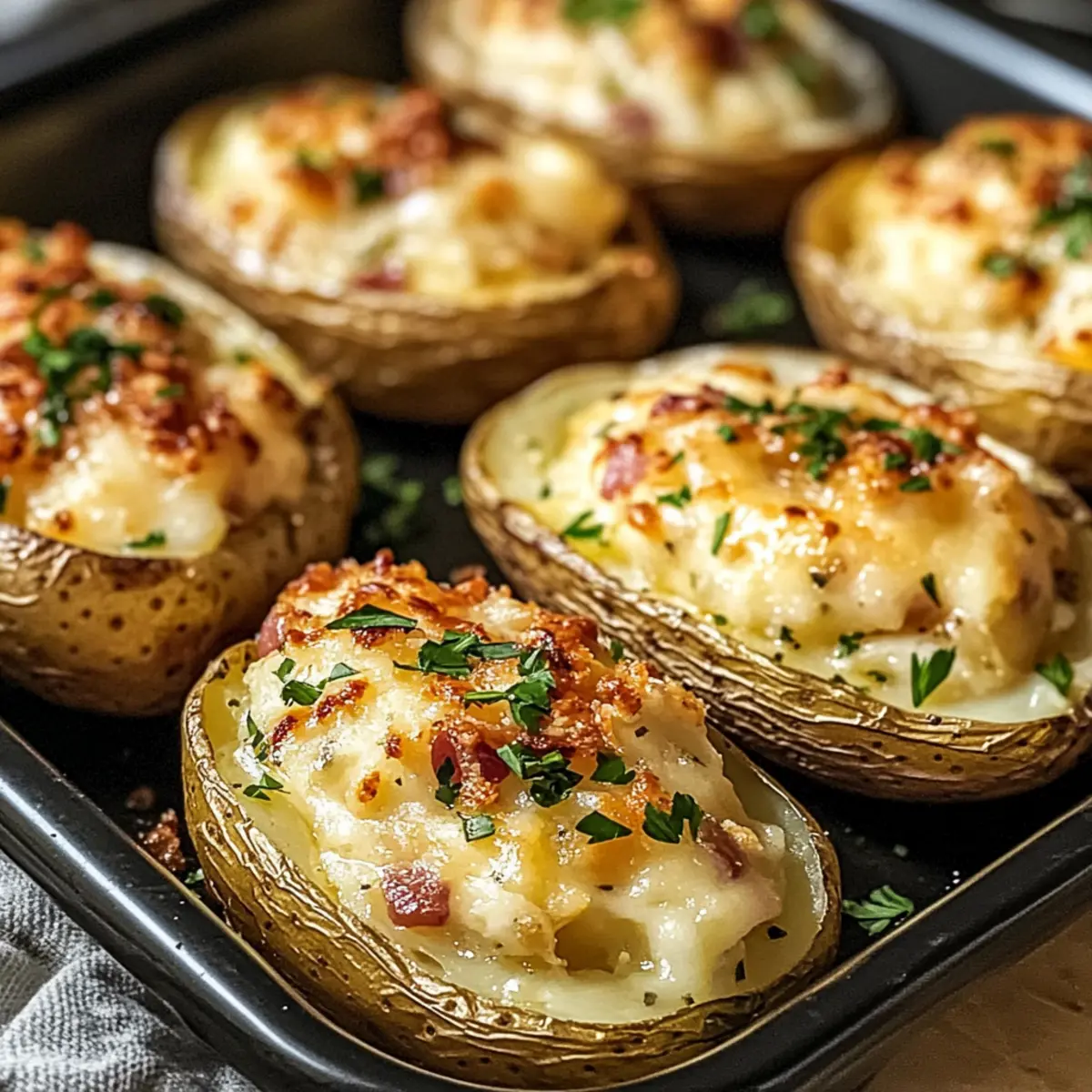 Einzigartiger Geschmack: Diese gefüllten Kartoffeln nach Flammkuchen-Art kombinieren die Aromen eines klassischen Flammkuchens mit der herzhaften Basis von Kartoffeln, was für ein wahres Geschmackserlebnis sorgt.