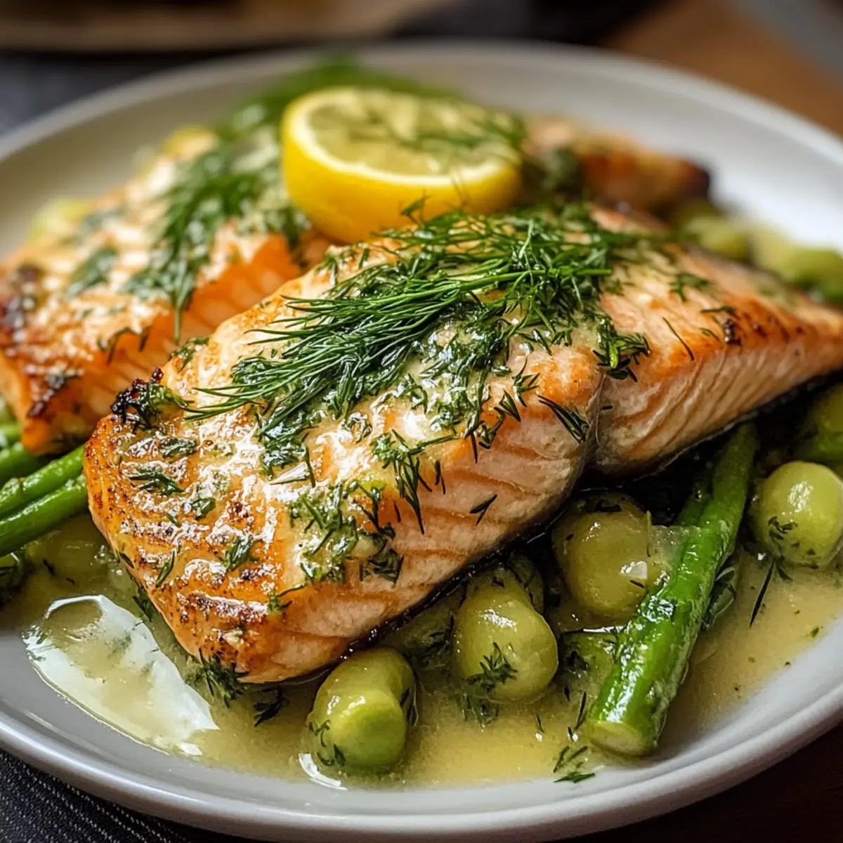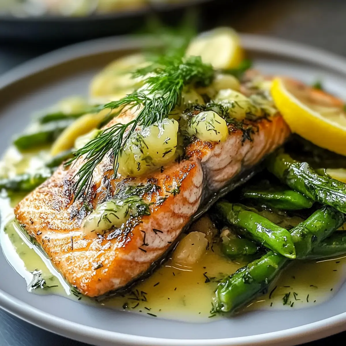 Frische Aromen: Die Kombination aus Zitronensaft und frischem Dill verleiht diesem Gericht eine belebende Frische, die perfekt zu den reichhaltigen, zarten Lachsfilets passt.