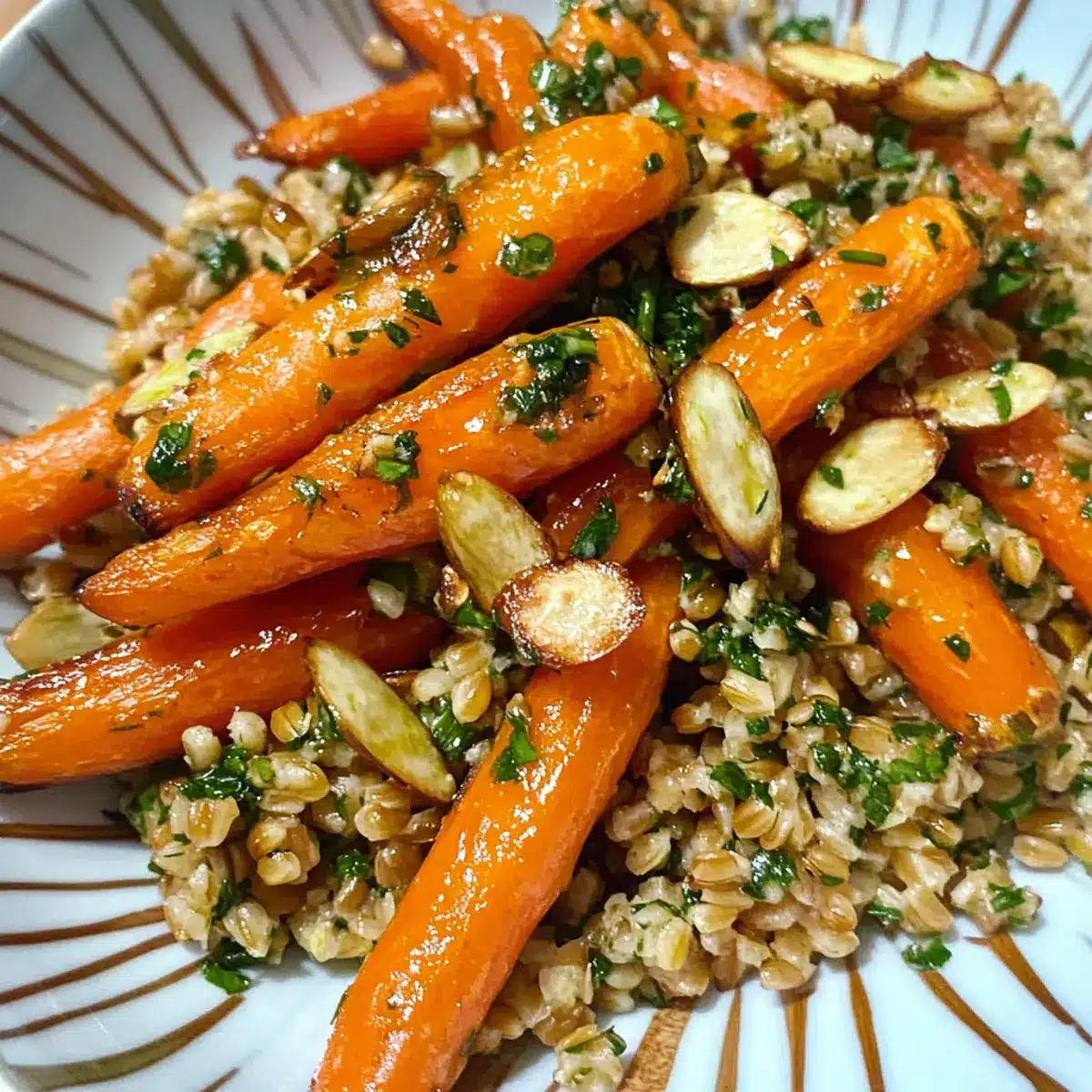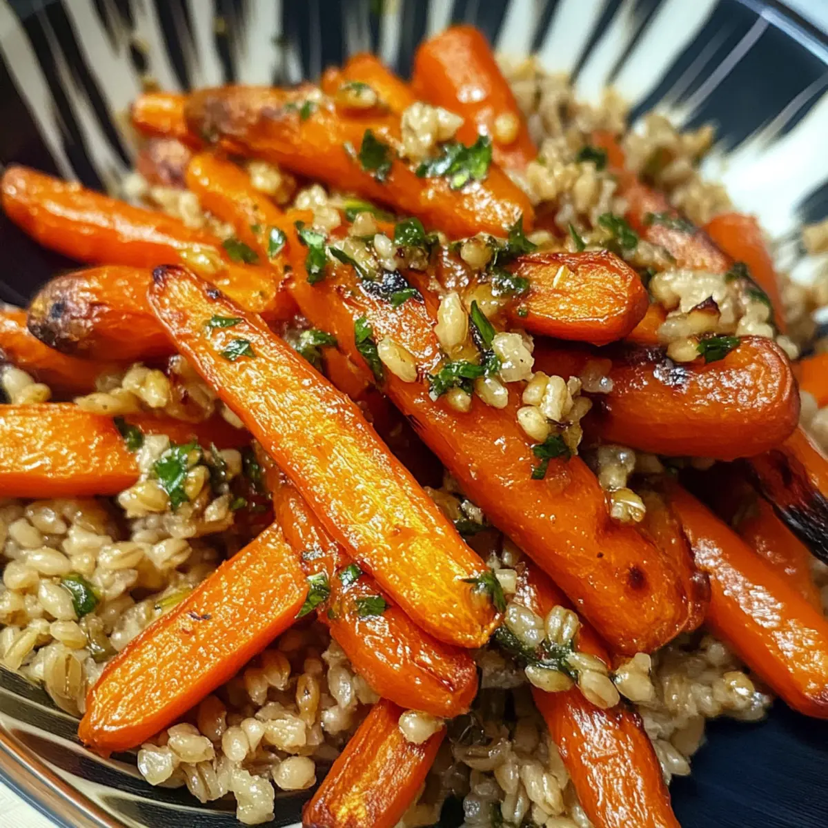 Genieße die vielfältigen Aromen dieser gerösteten Karotten und Farro und lass dich von der Kombination aus Süße und Herzhaftem verzaubern!