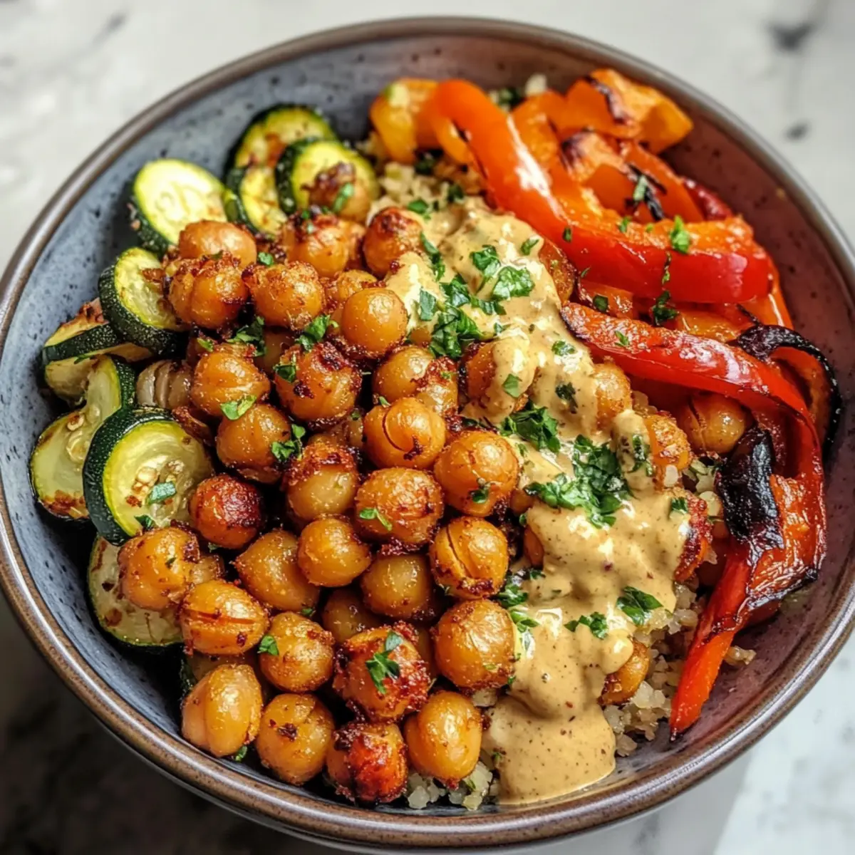 Genieße die gesunde und schmackhafte Kombination in deiner nächsten „Ultimate Roasted Chickpea and Veggie Bowl“!
