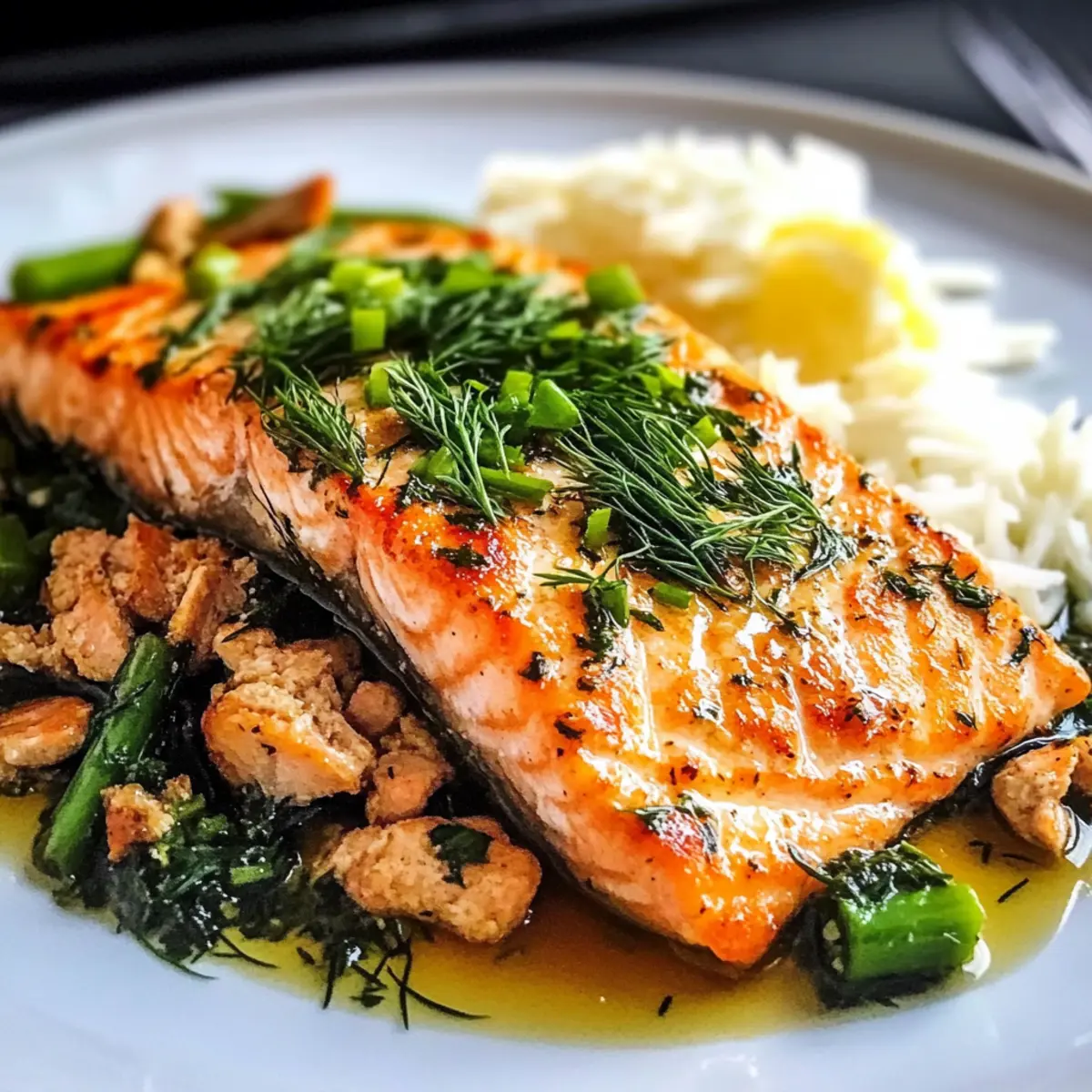 - Sauce über Lachs gießen und servieren.