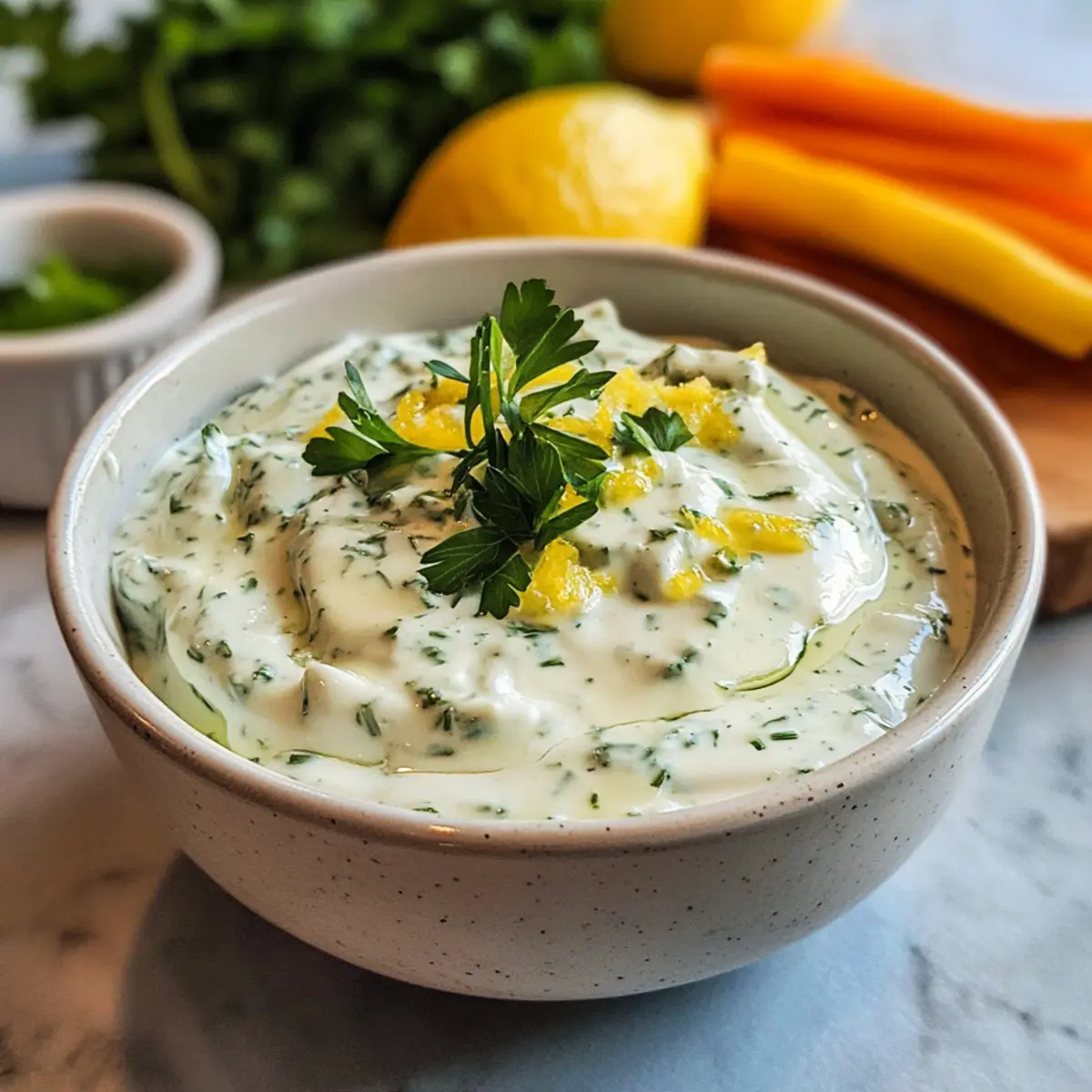 Kräuter-Mix: Kombinieren Sie verschiedene Kräuter wie Basilikum und Estragon für neue Geschmackserlebnisse. Dieser Mix verleiht Ihrem Dip eine mediterrane Note.