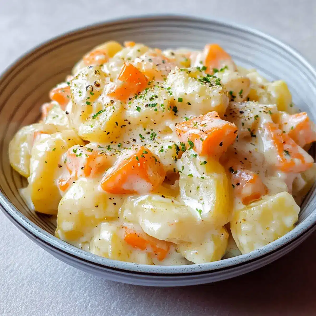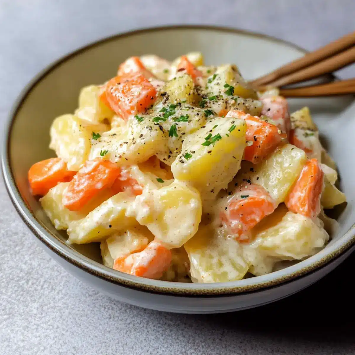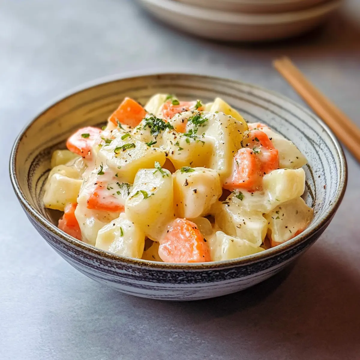 Einzigartiger Geschmack: Der ** cremige** japanische Kartoffelsalat kombiniert fluffige Kartoffeln mit einer knackigen Karottennote und einem Hauch von Zitrusfrüchten, der dein Geschmackserlebnis bereichert.