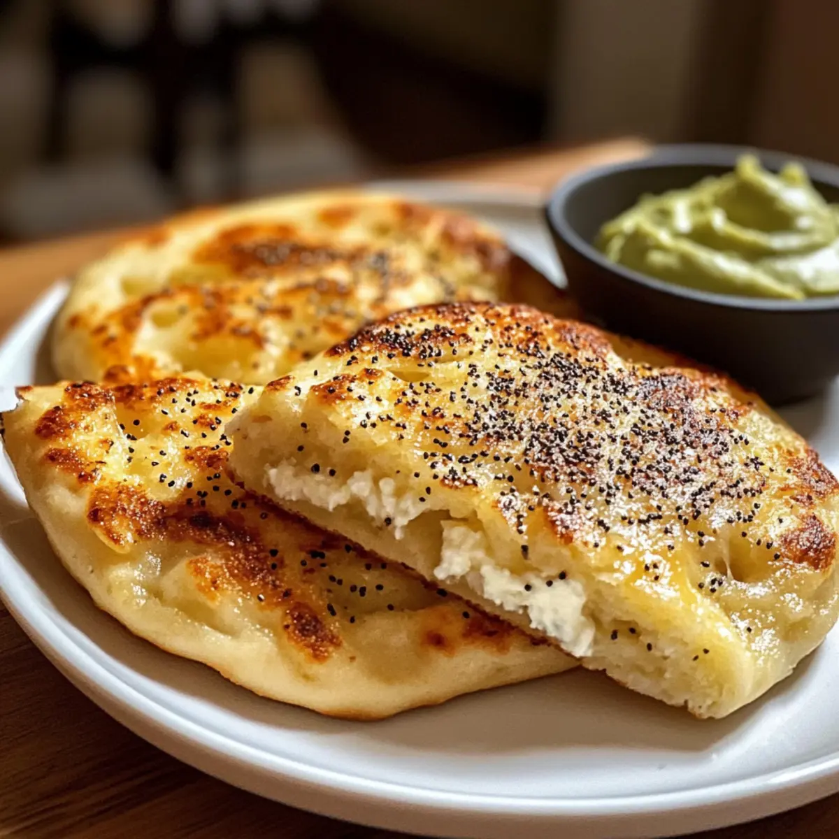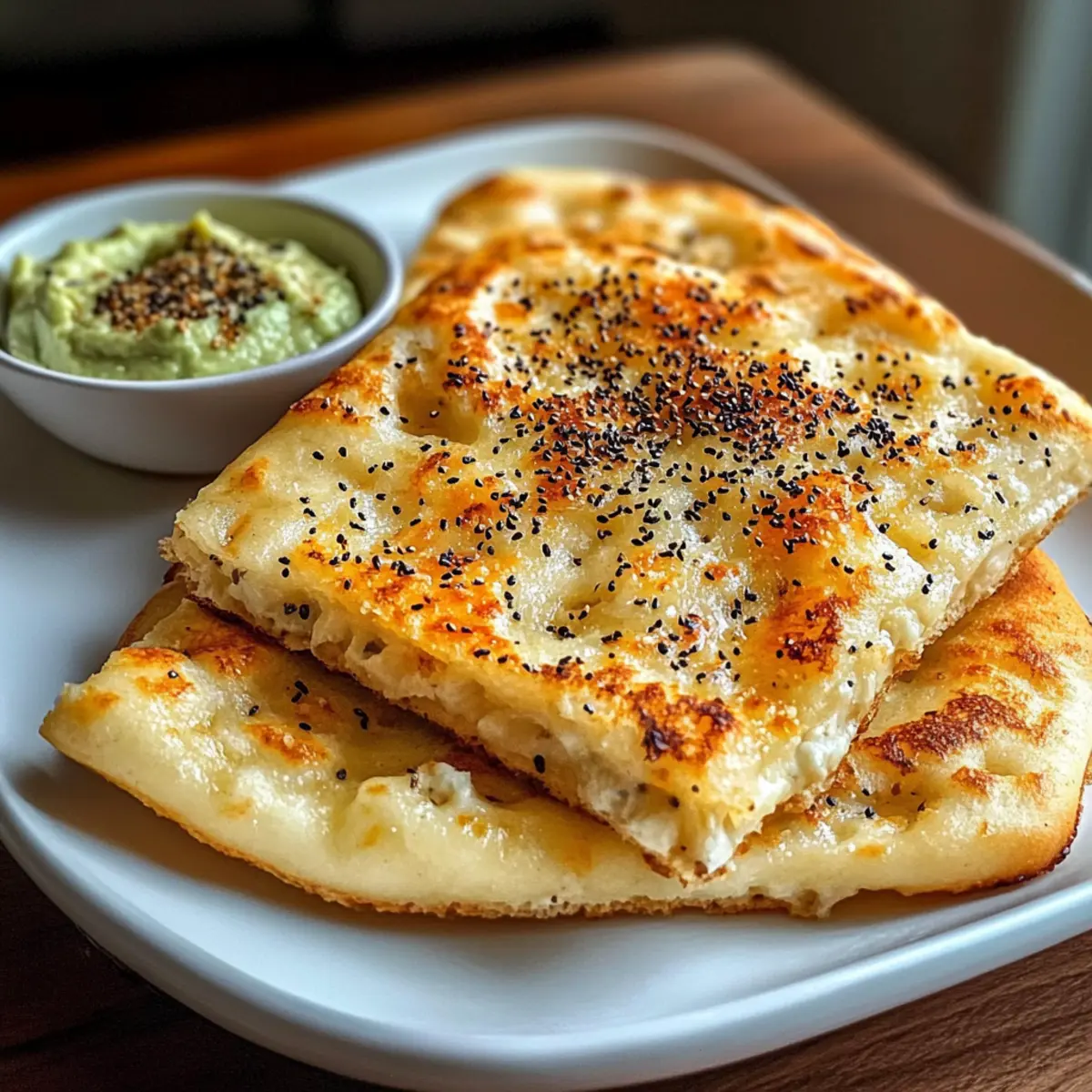 Genieße das knusprige, cremige Hüttenkäse-Fladenbrot als schmackhafte Ergänzung deiner Mahlzeiten!