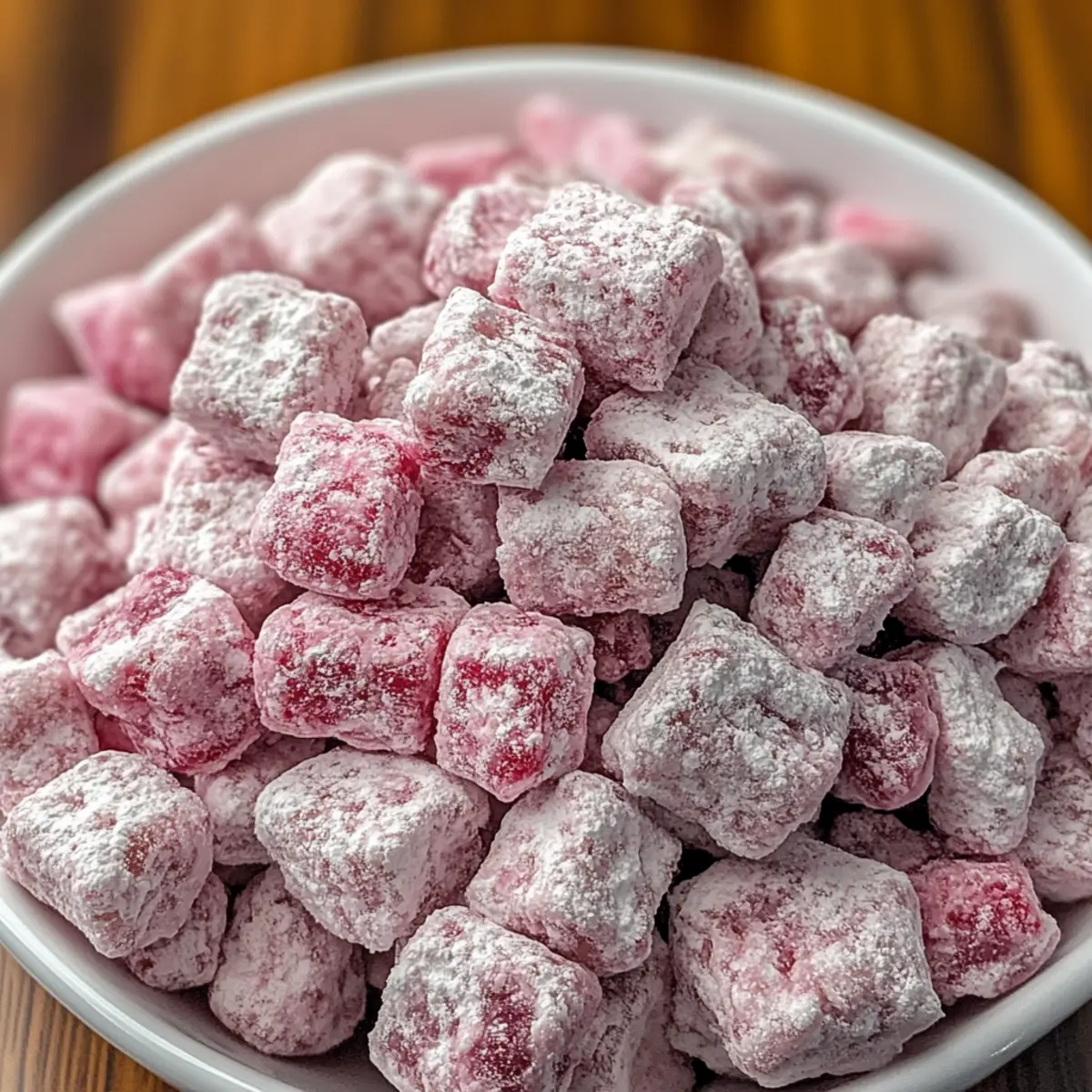 Optionales Topping: Experimentiere mit verschiedenen zusätzlichen Toppings oder Geschmacksvariationen, um dein Kirschkäsekuchen Puppy Chow Rezept noch abwechslungsreicher zu gestalten!