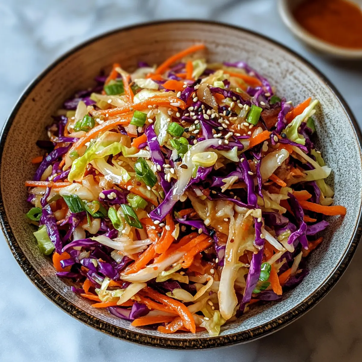 - Sesamöl – verleiht dem Salat einen nussigen Geschmack und exzellente Tiefe.