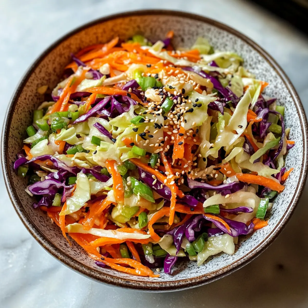 Um die Aromen noch intensiver zu entfalten, den Salat abdecken und für mindestens 30 Minuten im Kühlschrank ziehen lassen. Während dieser Zeit werden die Gemüse weich und nehmen die Aromen des Dressings auf. Wenn du bereit bist zu servieren, erhältst du einen bunten, knackigen Krautsalat, der frisch und einladend aussieht.