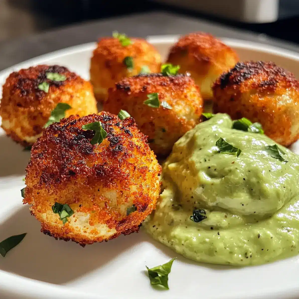 Lachs Bällchen mit cremiger Avocado Soße genießen