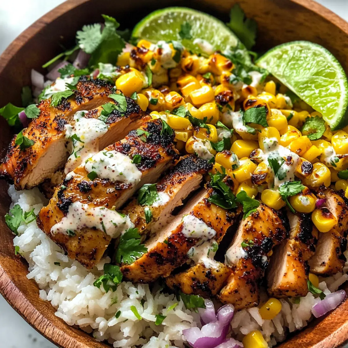 Variationen ausprobieren: Experimentiere mit verschiedenen Proteinquellen wie Garnelen oder gegrilltem Gemüse, um deine eigene, kreative Version der leckeren Straßenmais-Hühnchen-Schüssel zu schaffen.