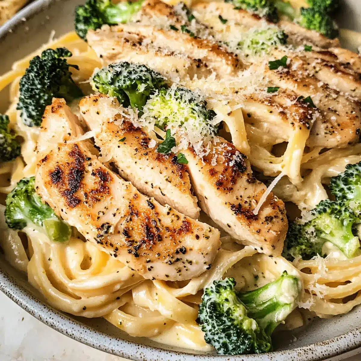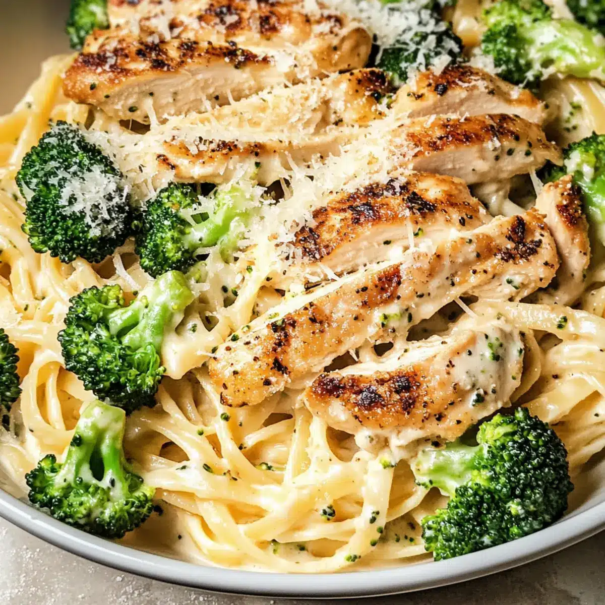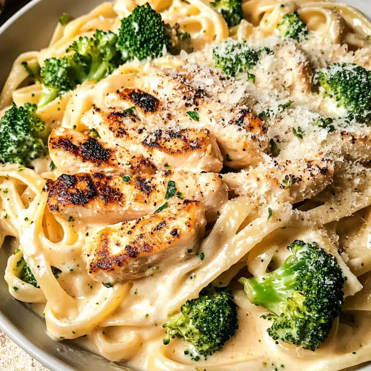- Reste verwenden: Bewahre etwas Nudelwasser auf, um die Konsistenz der Soße nach Bedarf anzupassen. So bleibt dein leichtes kalorienarmes Hähnchen Alfredo auch beim Aufwärmen cremig.