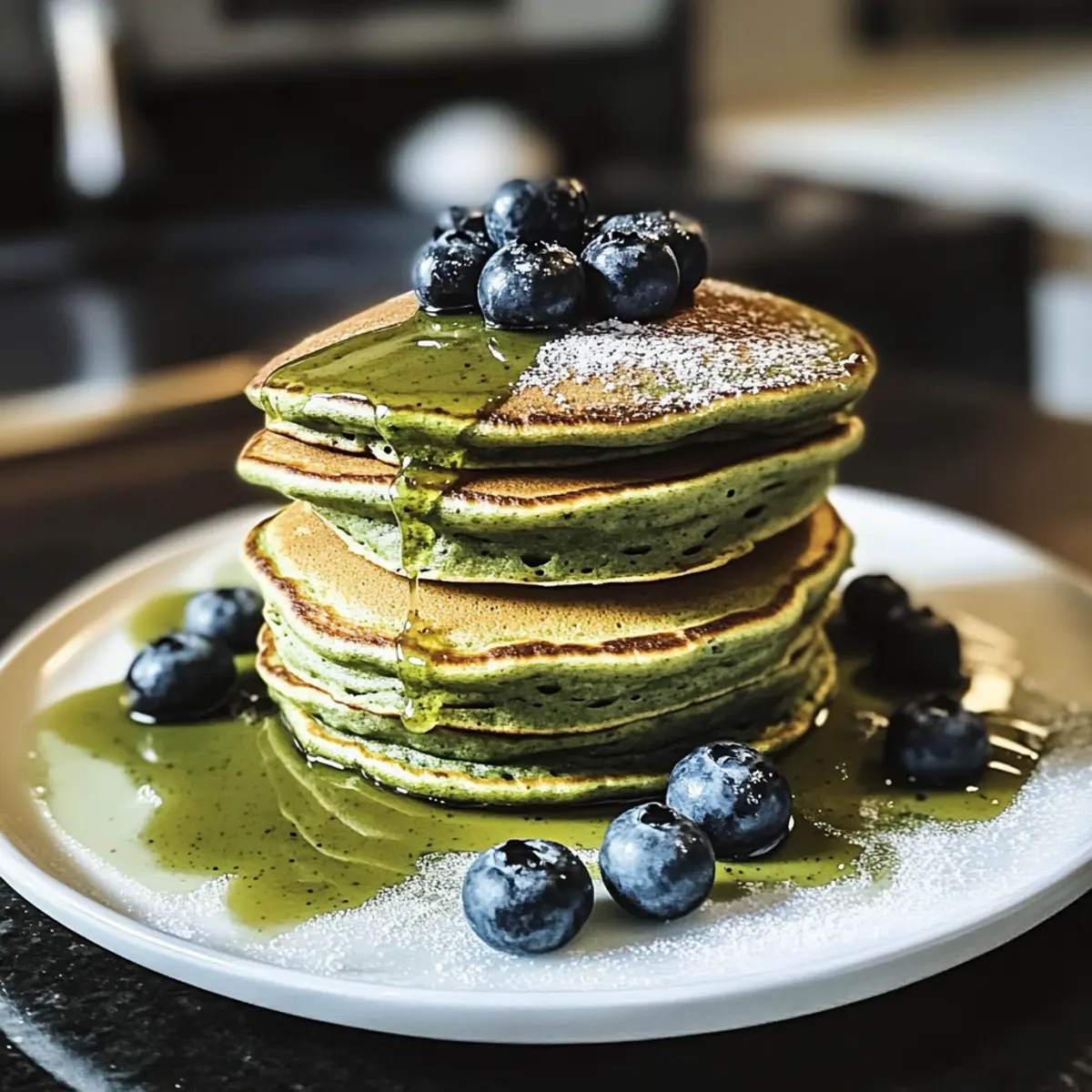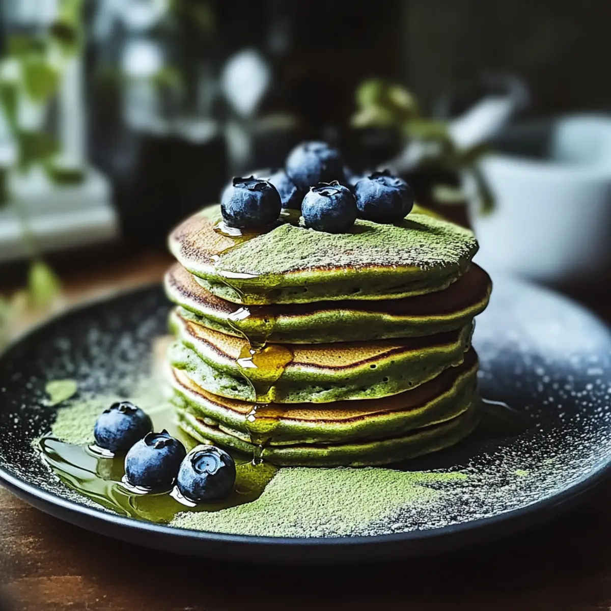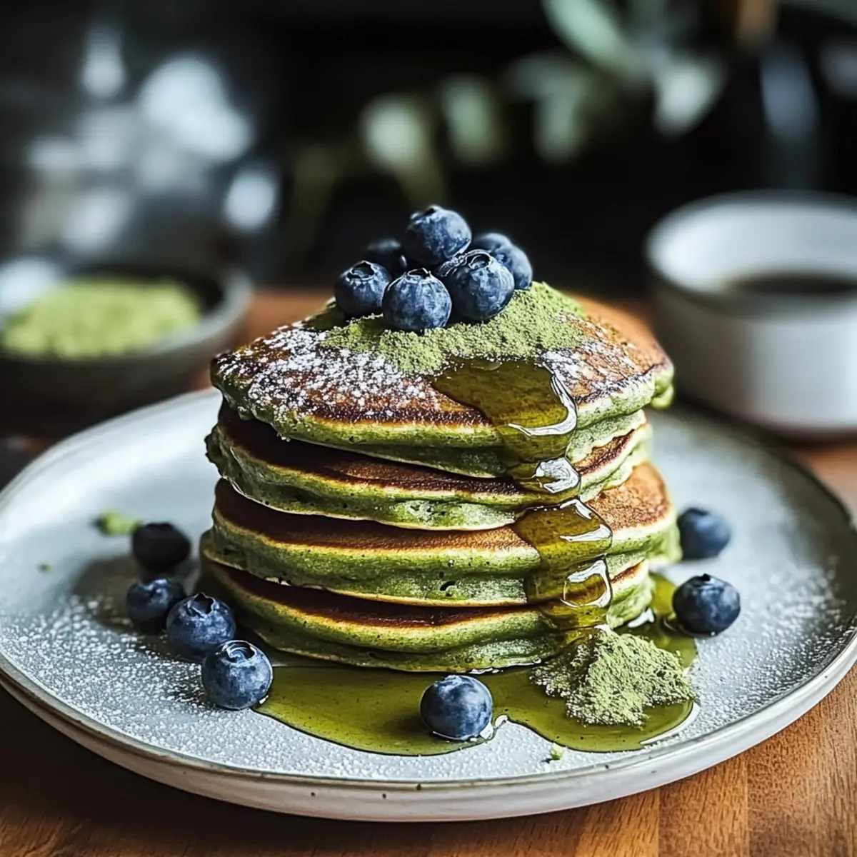 Fluffige Matcha-Pulver-Pfannkuchen für Gourmet-Frühstück
