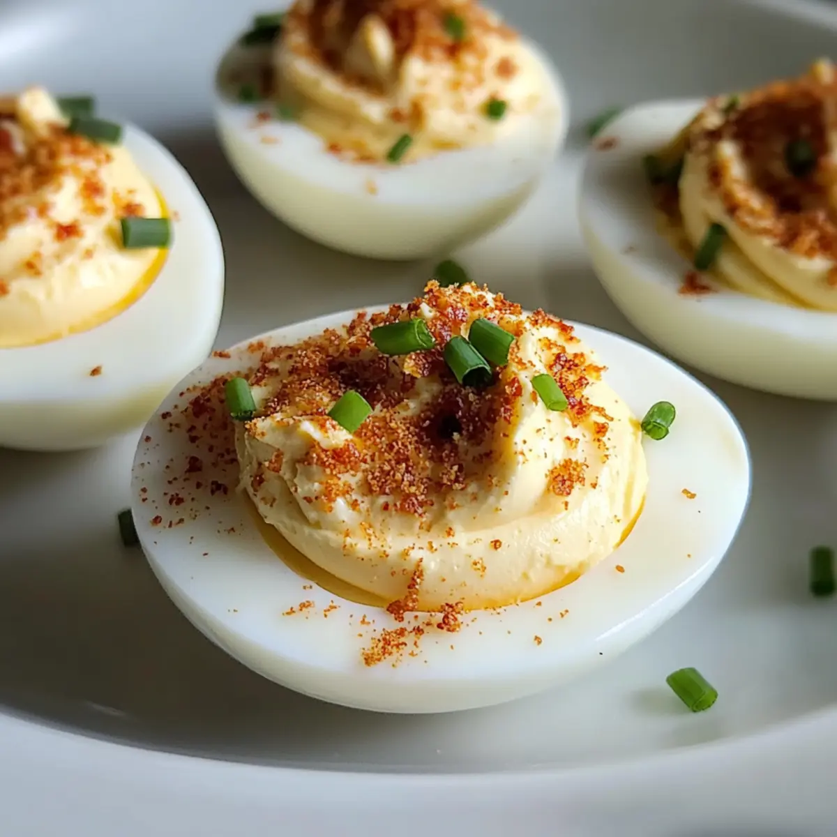 Bestreue die gefüllten Eier großzügig mit Paprika und den zusätzlichen Schnittlauchstücken für einen frischen Akzent. Die Paprika gibt nicht nur Farbe, sondern auch einen leichten Geschmackskick. Serviere die Million Dollar Gefüllte Eier sofort oder stelle sie bis zum Servieren in den Kühlschrank.