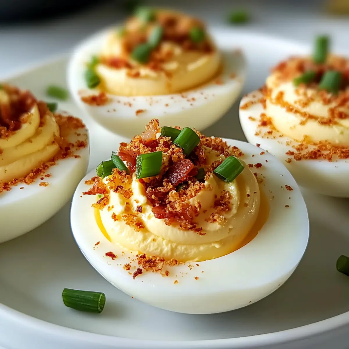 Genuss garantiert! Diese gefüllten Eier sind die perfekte Kombination aus cremigem, würzigem Füllung und knusprigem Bacon. Einfache Zubereitung! Selbst Anfänger in der Küche können mit diesem Rezept beeindrucken, ohne sich überfordert zu fühlen. Vielseitig einsetzbar! Egal ob zu festlichen Anlässen oder einem entspannten Abend, sie passen zu jeder Gelegenheit. Überraschende Geschmacksvariationen! Probiere verschiedene Füllungen wie geräucherten Lachs oder frische Kräuter für individuelle Akzente. Ein echter Publikumsmagnet! Deine Gäste werden diese köstliche Vorspeise lieben und nach dem Rezept fragen!